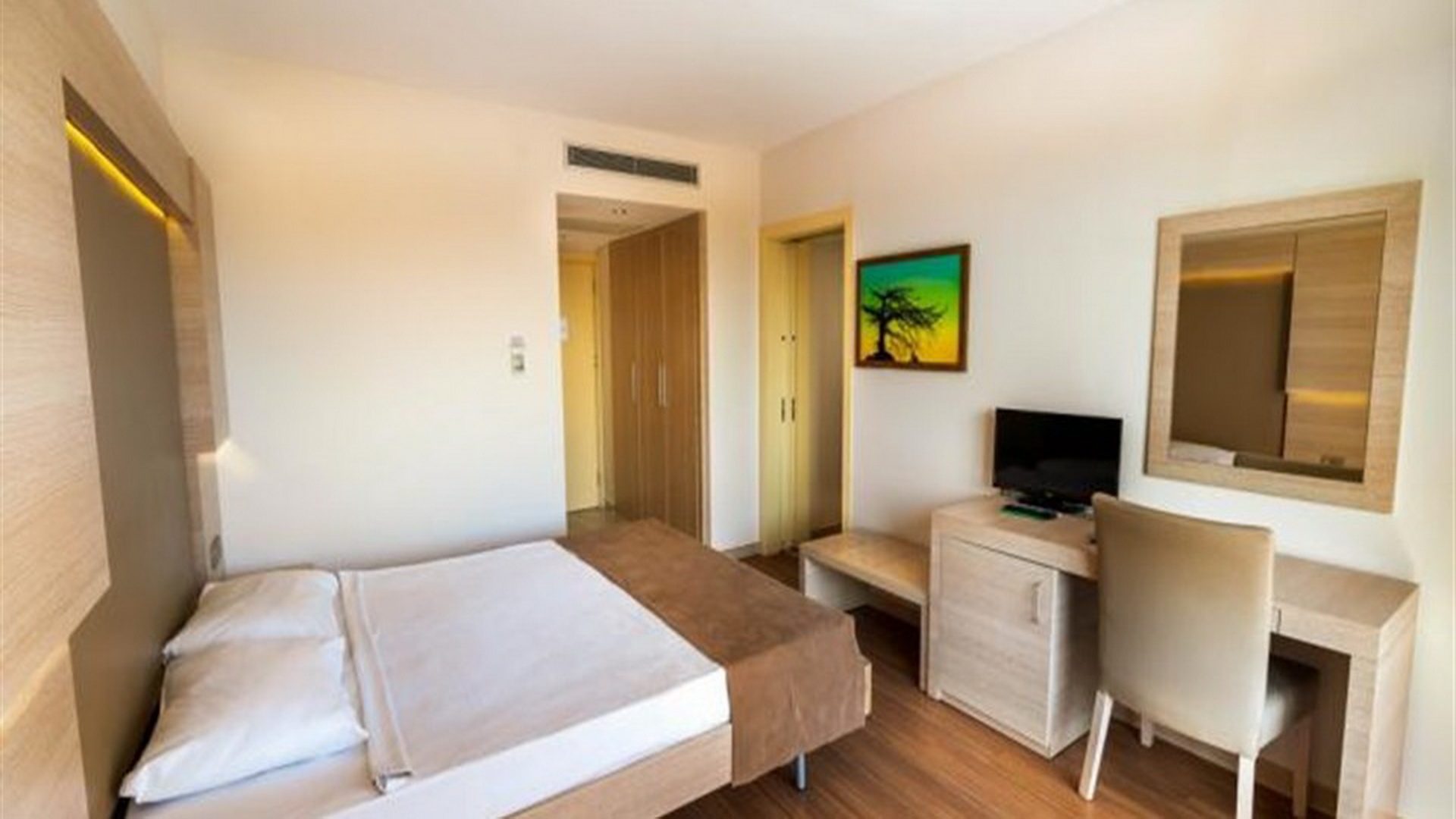 Ultra All Inclusive на база на отворено бифе – самопослужување, избор на повеќе јадења (шведска маса) за појадок, ручек и вечера, утринска ужина, попладневен чај, кафе и колачи, полноќна ужина, локални и стандардни увозни алкохолни и безалкохолни пијалоци од 10:00 до 24:00 часот, сокови и пиво во Аква парк, Снек бар на плажа од 10:00 до 18:00 часот, A la Carte ресторан со претходна резервација и еднаш за време на престојот.