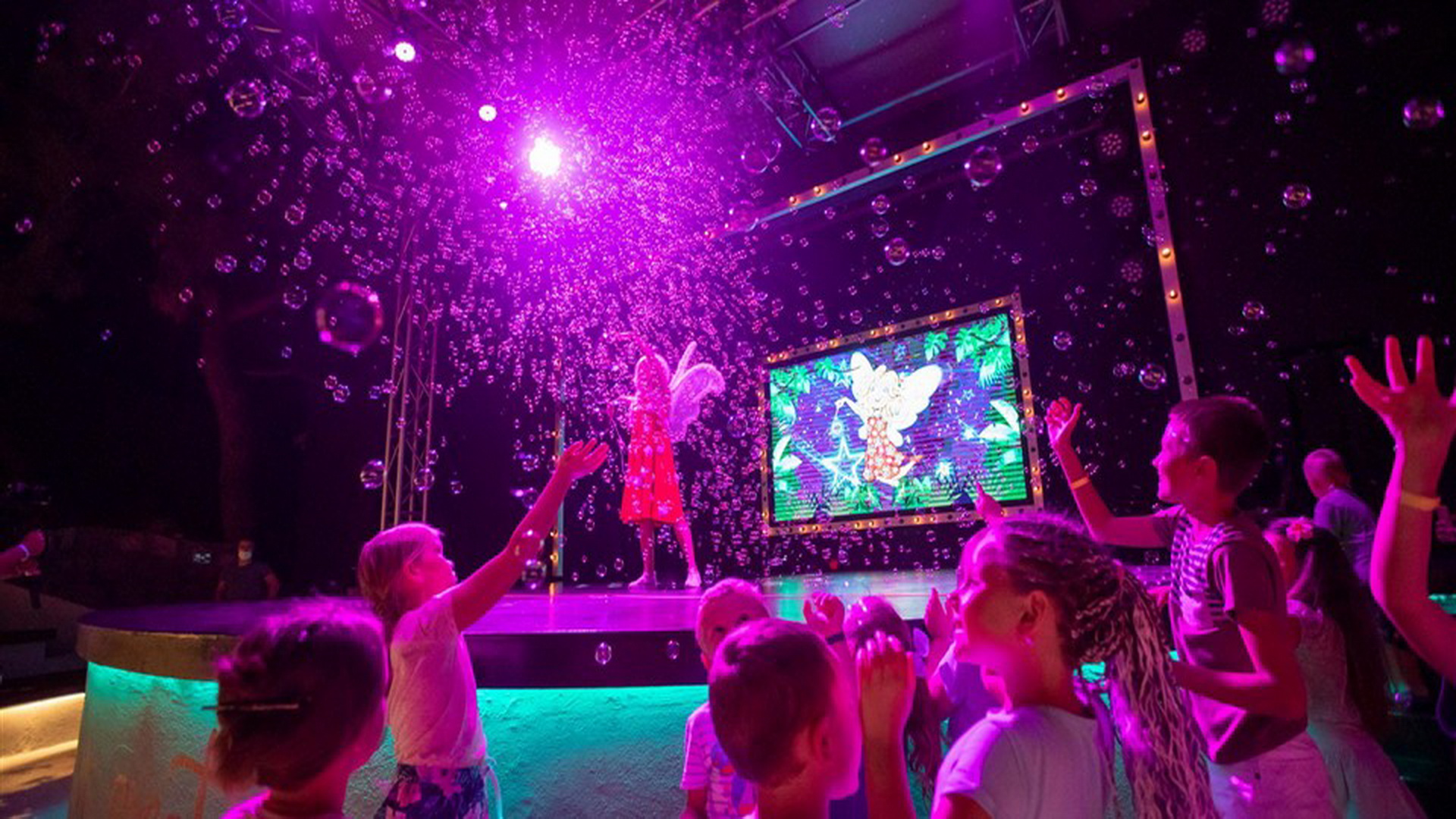 Надворешни и внатрешни базени за возрасни и деца, аква парк, базен со бранови, тениски терени, мини фудбал, одбојка на плажа, кошарка, пинг-понг, фитнес центар, турска бања, сауна, забавни програми во текот на денот, натпревари покрај базен и на плажа, вечерни претстави, мини клуб Angel & Happy Pirates за деца од 4 до 12 години, детско игралиште, мини диско навечер, Тинејџерскиот клуб за деца од 13 до 17 години е отворен до 23.00 часот.