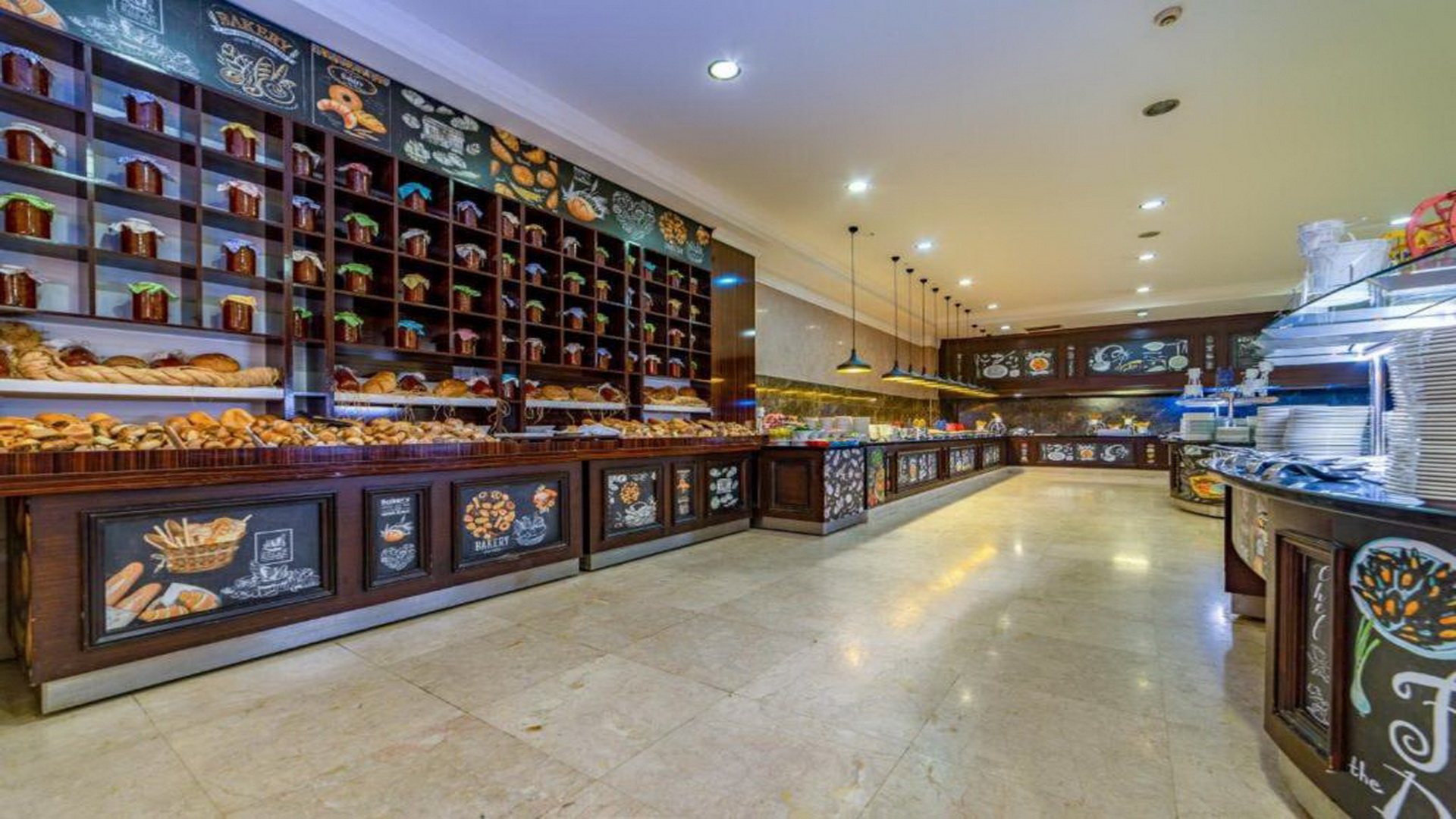 Главен ресторан со шведска маса, 7 À la Carte ресторани – морска храна, кујна од блискиот исток, турска кујна, италијанска кујна, бар за ужина на плажа, барови околу хотелскиот комплекс, слаткарница, бистро, диско. Доктор, перење и хемиско чистење, чување деца, шопинг центар, телефон, факс, интернет кафе и компјутерски игри, изнајмување кола се доплаќа.