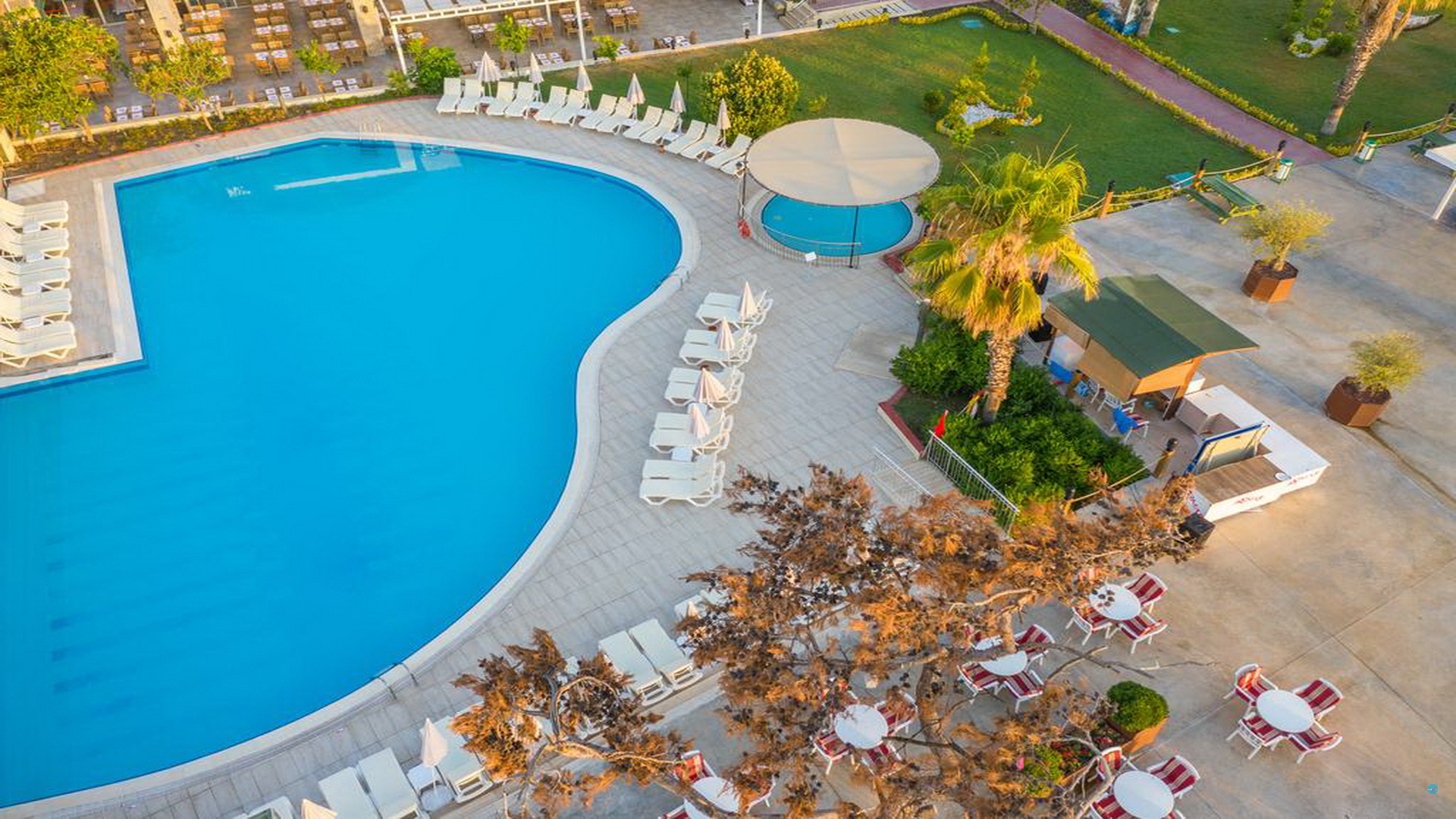 Отворен базен за возрасни и деца, две лизгалици на вода, фитнес, Турска бања, сауна, пинг понг. Масажа, билијард и спортови на вода дополнително се наплаќаат. Забавни програми во текот на денот и во вечерните часови. Мини клуб за деца од 04-12 год.