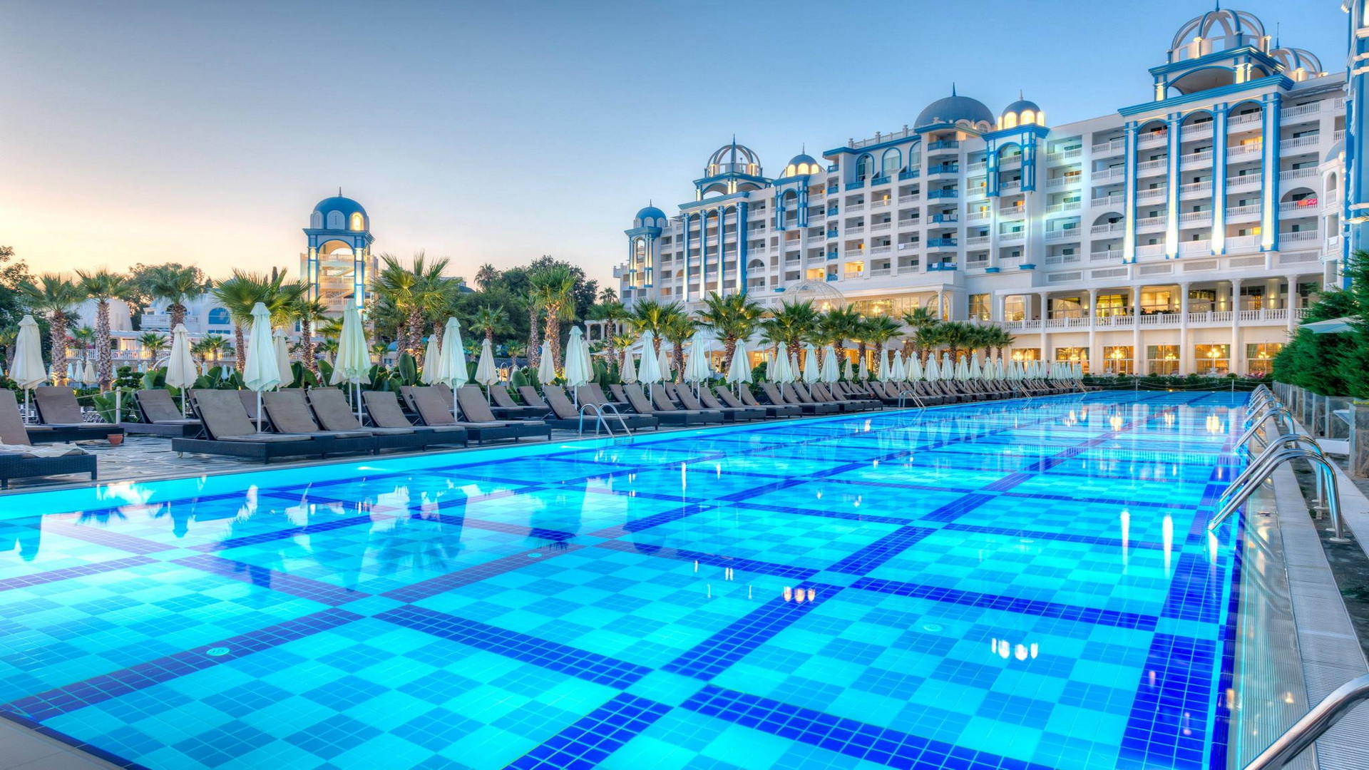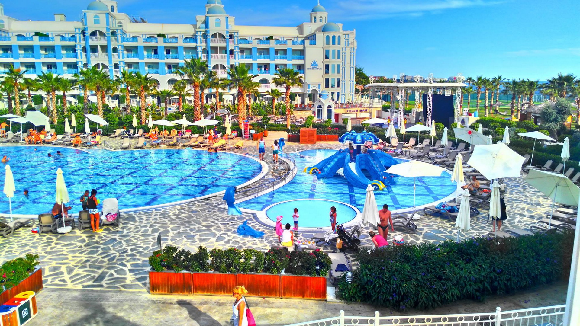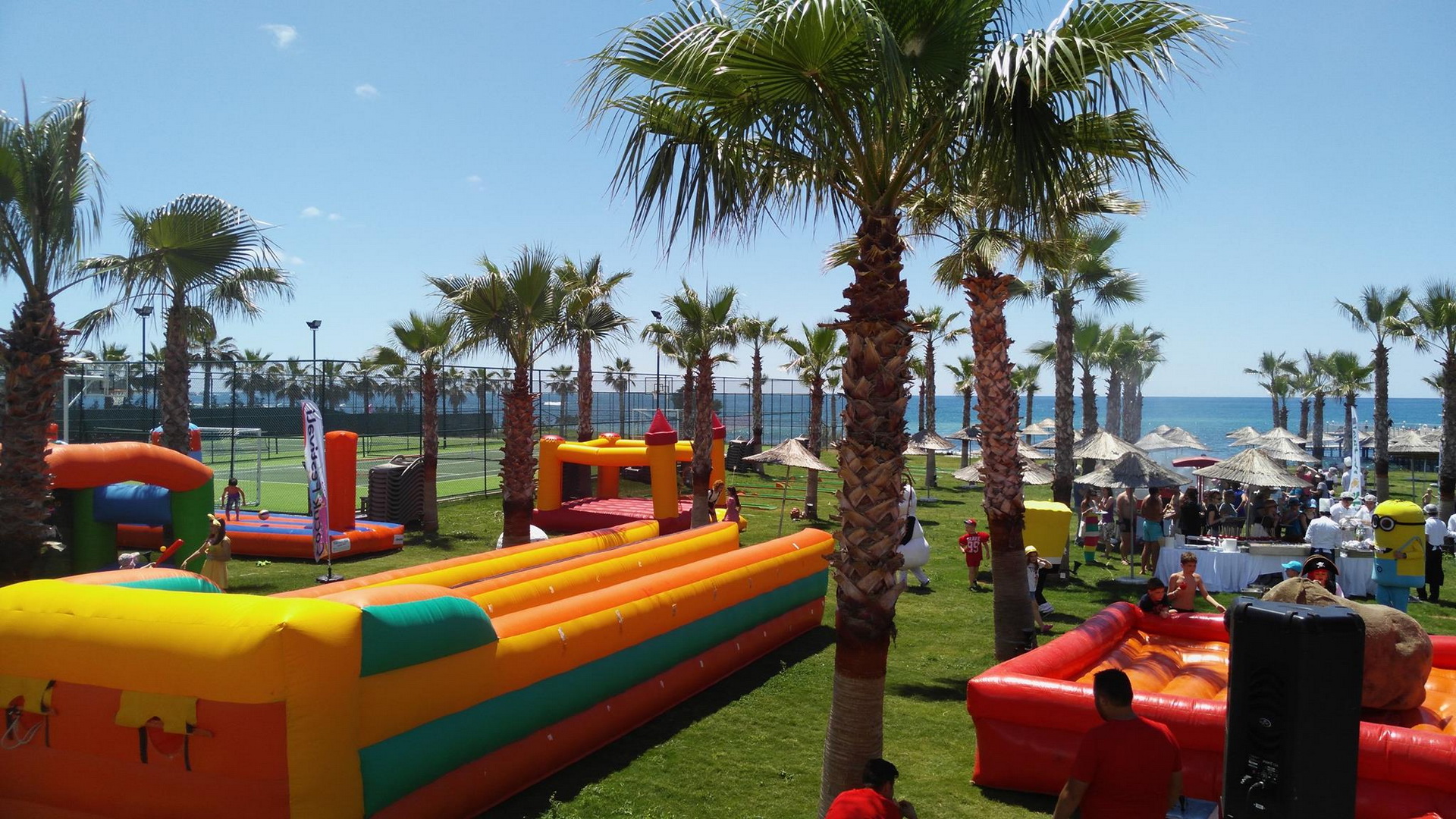Отворени и затворени базени за возрасни и деца, водени лизгалици, фитнес центар, турска бања, сауна, соба со пареа, снежна соба, одбојка на плажа, пинг понг, мини голф. Дополнително се наплаќаат Спа и Велнес центар, масажа, сите видови на водени спортови. Забавни дневни програми, натпревари покрај базен и на плажа, вечерни шоу програми. Фамилијарен клуб за деца од 4 до 17год. Поделени во групи според возраста, различни активности, кино за деца, луна парк, мини голф, игралиште, мини диско во вечерните часови
