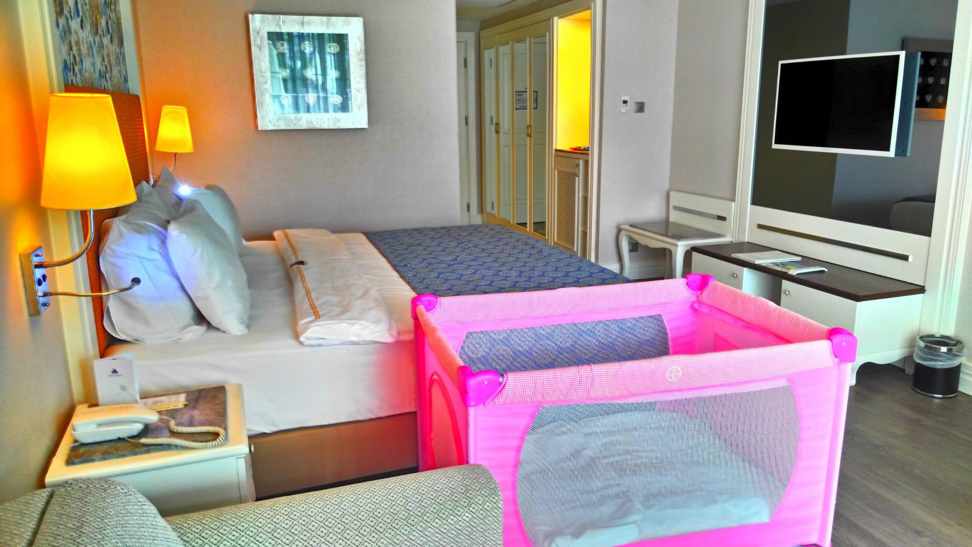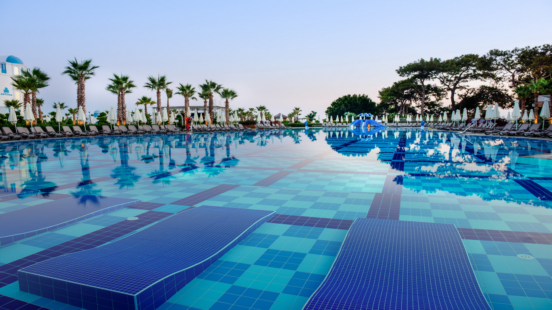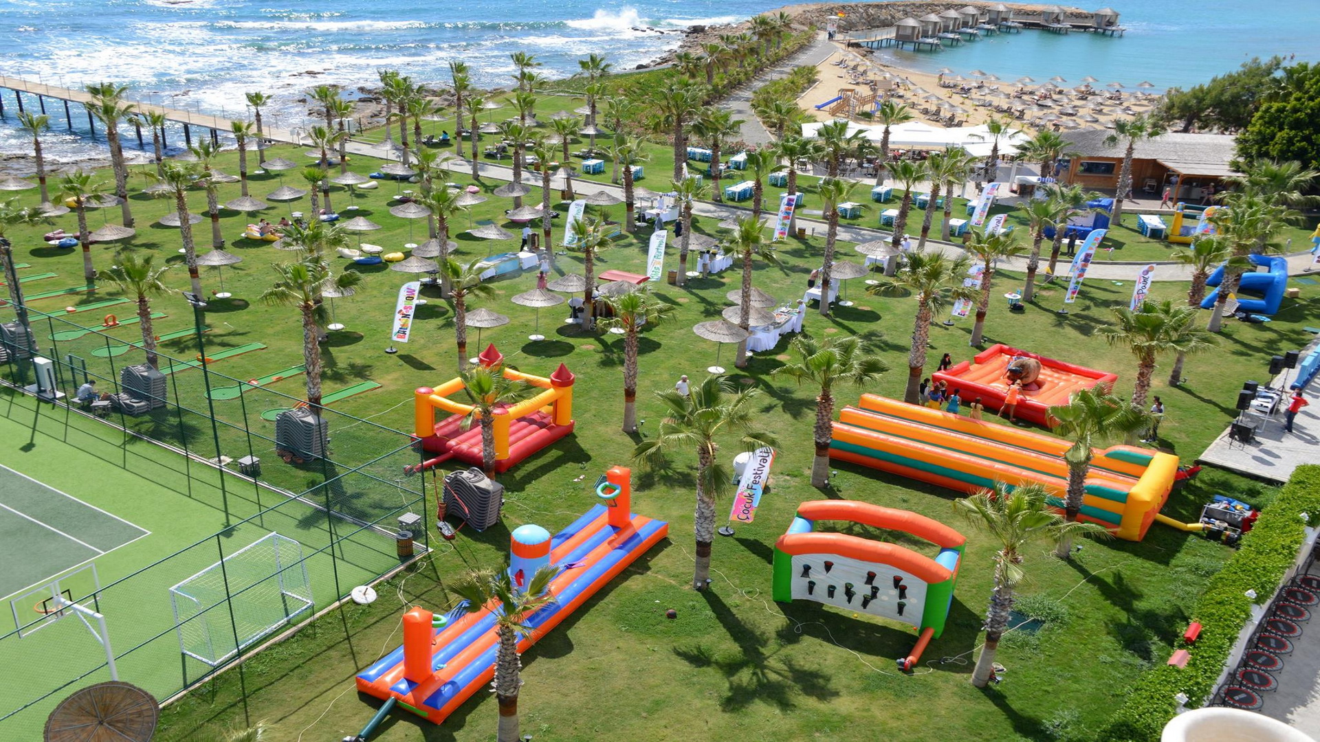 Отворени и затворени базени за возрасни и деца, водени лизгалици, фитнес центар, турска бања, сауна, соба со пареа, снежна соба, одбојка на плажа, пинг понг, мини голф. Дополнително се наплаќаат Спа и Велнес центар, масажа, сите видови на водени спортови. Забавни дневни програми, натпревари покрај базен и на плажа, вечерни шоу програми. Фамилијарен клуб за деца од 4 до 17год. Поделени во групи според возраста, различни активности, кино за деца, луна парк, мини голф, игралиште, мини диско во вечерните часови