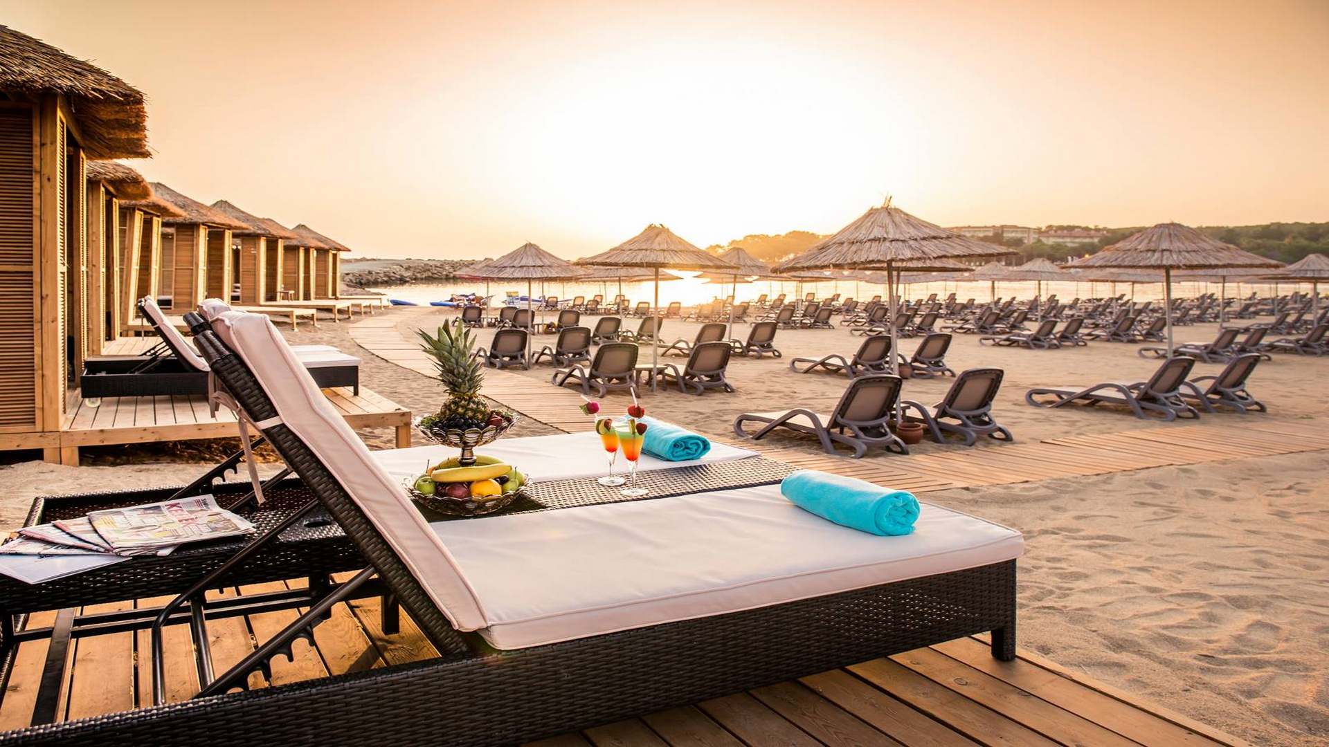 Мохито, Водка, Џин,  егзотични коктели и разновидни увезени пијалоци со висок квалитет преовладуваат во менијата на 5-те барови во секој час од денот и ноќта.Во меѓувреме додека флертувате со сончевите зраци покрај плажа девојки и момци на ролери Ве служат со освежителни пијалоци. Ресортот во текот на денот е тивок и релаксирачки. Вечерта почнува да се буди со спектакуларните настапи, концерите со настап на познати светски уметници, со Beach Party кај Papaya Bar и Диско забави кои траат се до утринските часови.