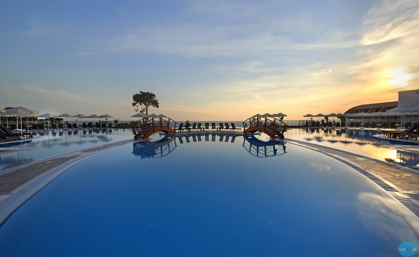 Надворешни и внатрешни базениза возрасни и деца, 3 водни лизгалки, фитнес центар, Турска бања, сауна, парна бања, одбојка на плажа, гимнастика и пинг понг. Се доплаќа: Спа центар, водни спортови, масажи, билјард и компјутерски игри. Дневни и вечерни анимации, натпреварувања покрај базенот и на плажата, вечерни шоу програми, Мини клуб за деца од 04-12 год. Со дневни и вечерни програми.