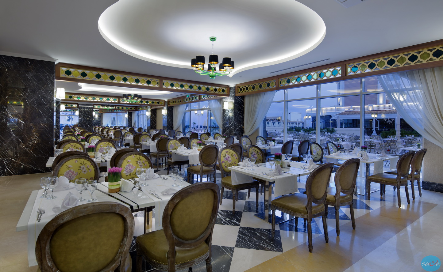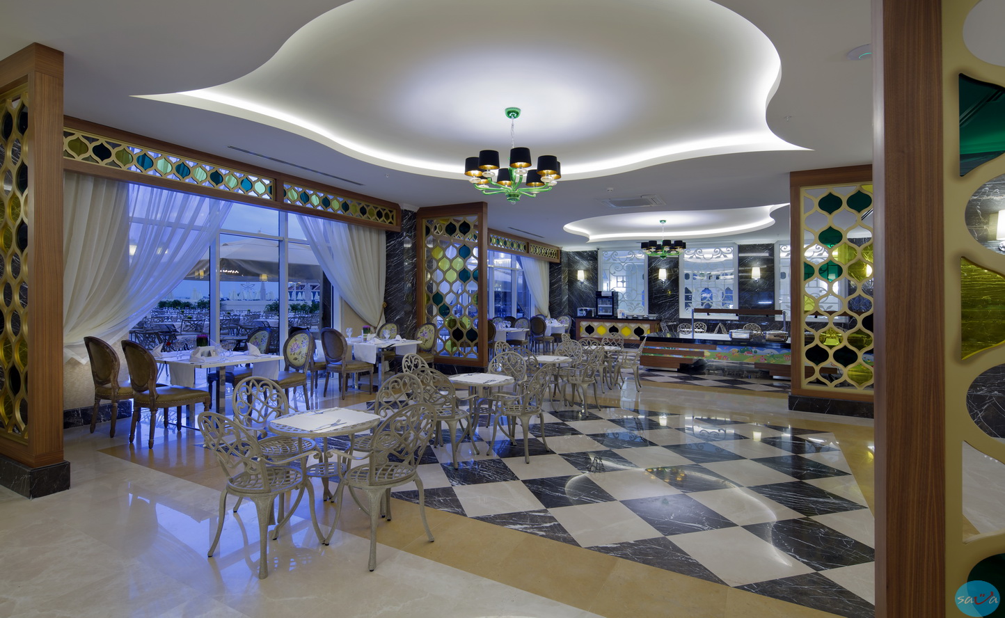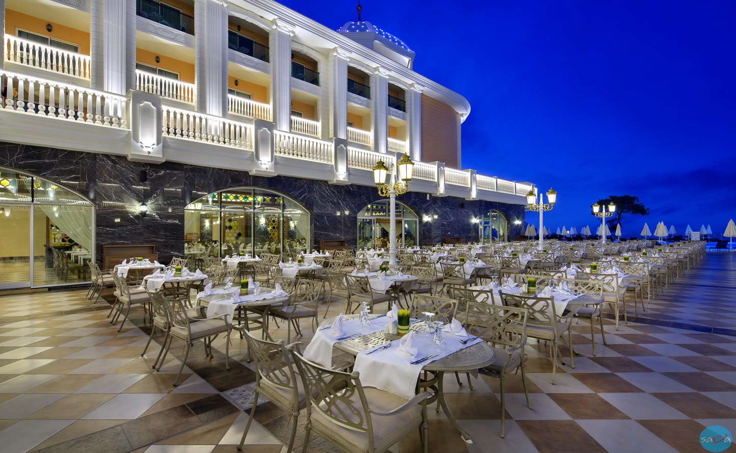 Ultra all inclusive – шампањ за добредојде за возрасни и различни пијалоци за деца, 24 часа шведска маса за појадок, доцен појадок, ручек, вечера, утрински и попладневни снекови,, доцни снекови, сите локални и некои увезени пијалоци (увезените пијалоци се служат само во Лоби бар од 10:00 – 00:00 часот) и безалхохолни пијалоци, сладолед во одредени часови после пладне, снек бар на плажа, A’la Carte ресторани(Турски и рибен ) со претходни резервации еднаш во текот на престојот. Со доплата: специјални увезени пијалоци, Суши Ала карте ресторан, специјални вина, сите флаширани пијалоци, свежи цедени сокови, собна послуга.