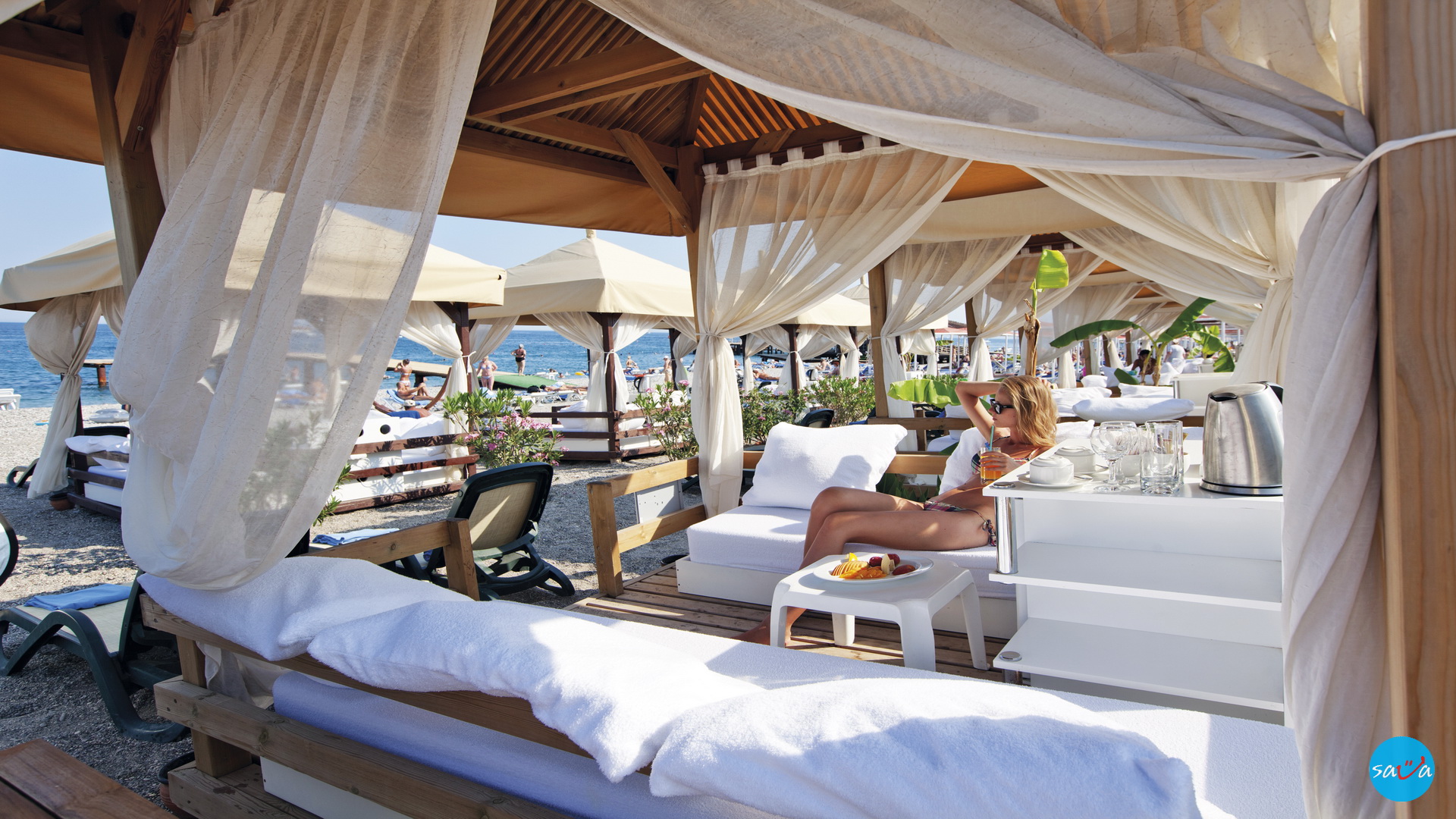 Хотелска приватна плажа со песок и камчиња. Лежалки, чадори за сонце и пешкири за плажа не се наплаќаат. Приватни павиљони на плажа се наплаќаат.