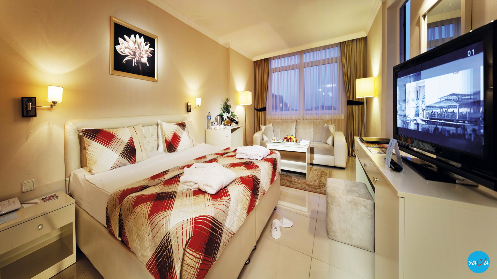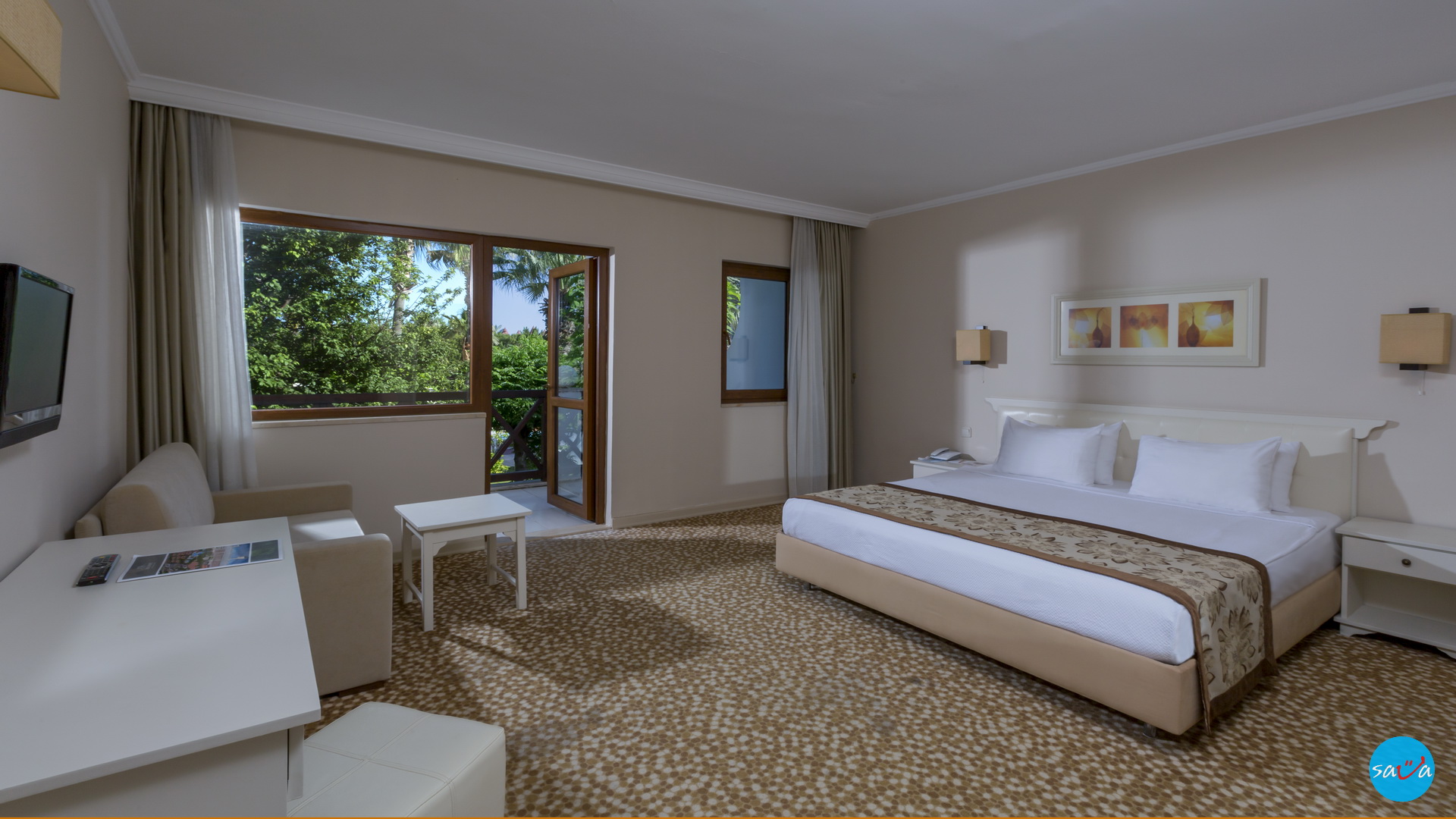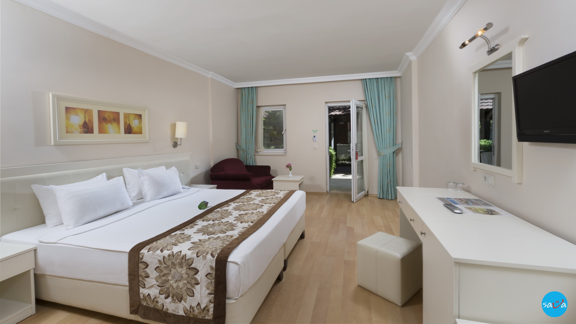 Вкупен број на соби 800, во четери хотелски згради. Стандардни соби (25м², макс.2+1 лица), Економски соби (24м², макс.2+1 лица)-некој од собите немаат балкон, лоцирани се во приземјето со поглед на градина и во Анекс зградата, Фамилијарни соби (46м², макс.5 лица)-две спални одвоени со врата, две купатила и осум соби за хендикепирани лица. Сите соби се со балкон или тераса, купатило со када или туш, фен, централна или сплит систем клима, сателитска ТВ и музички канали, телефон, мини бар (вода и сокови на пристигнување, подоцна се дополнува само со вода), сеф, тепих или паркет на подот, WiFi интернет конекција.