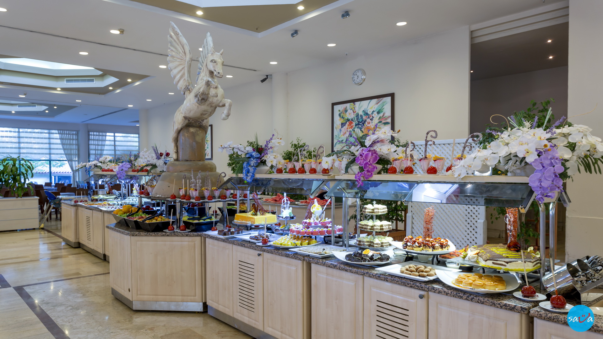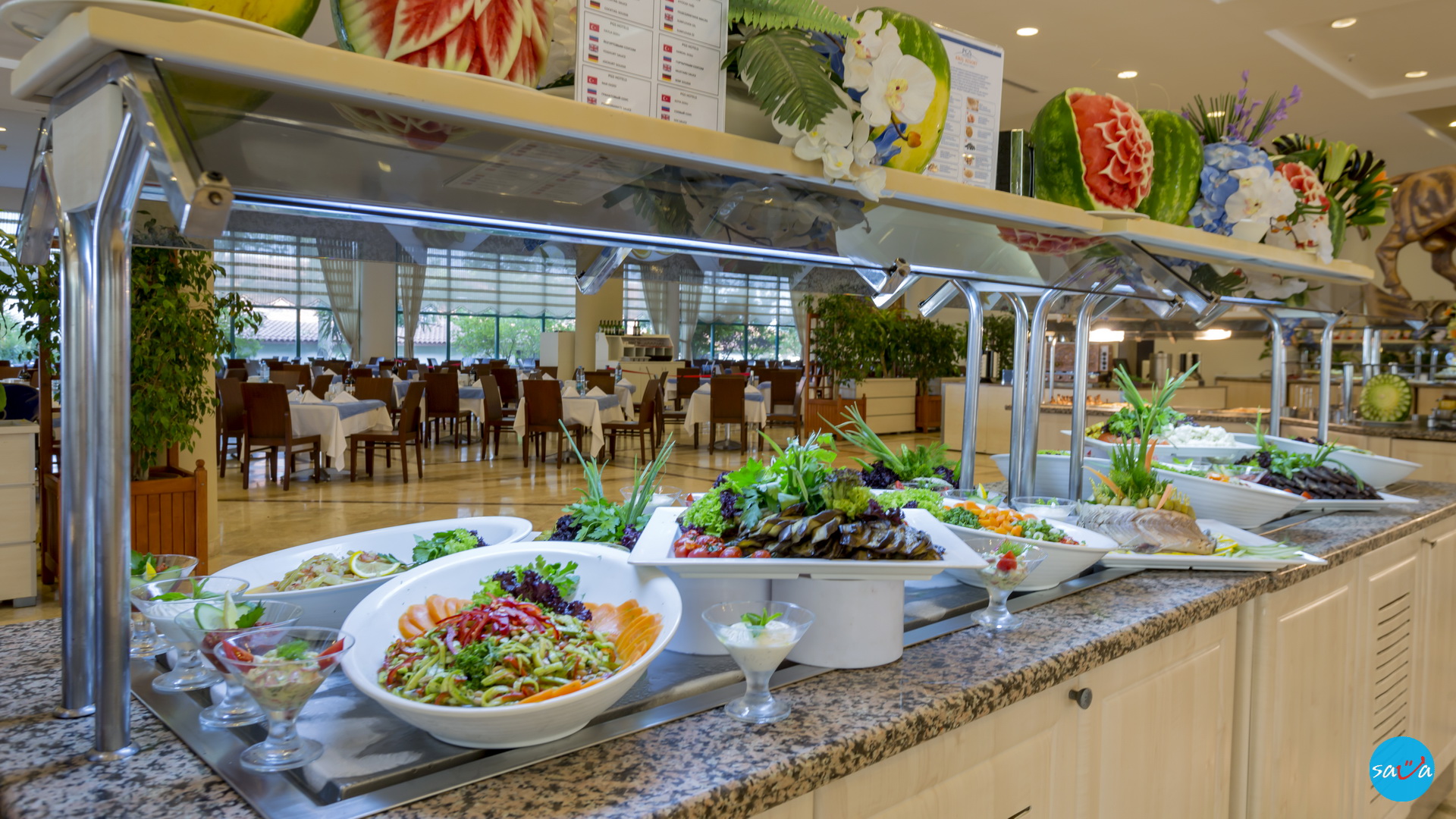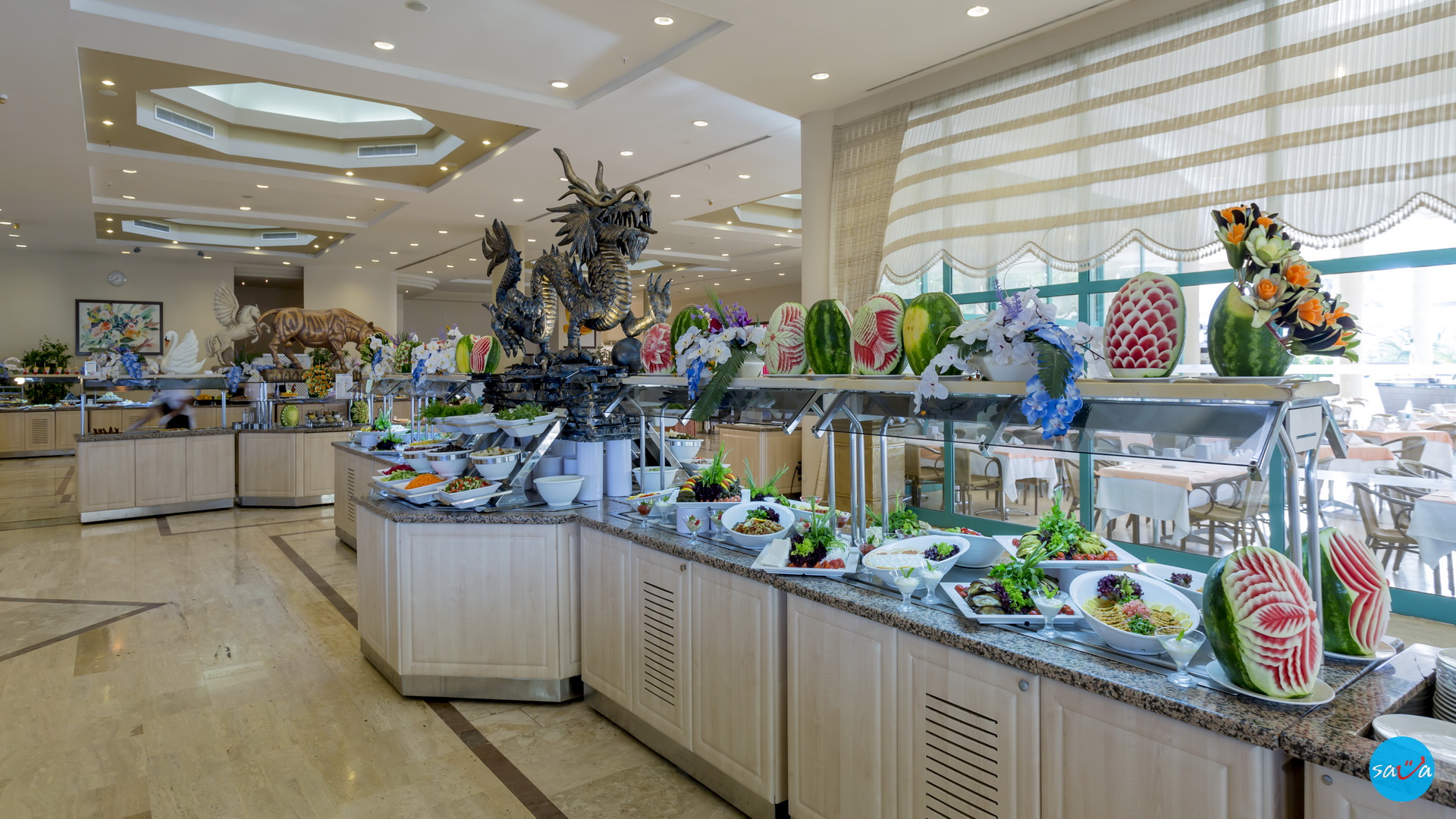 Главен ресторан со шведска маса, A’la Carte ресторани-Италијански, Турски и Мексикански, лоби бар, бар покрај базен, бар на плажа, диско бар. Доктор, телефон, факс, интернет и компјутерски игри, перална и хемиско чистење, мини маркет, продавници, фризер, rent a car, дополнително се наплаќаат. Бесплатен Wi-Fi интернет во лоби.