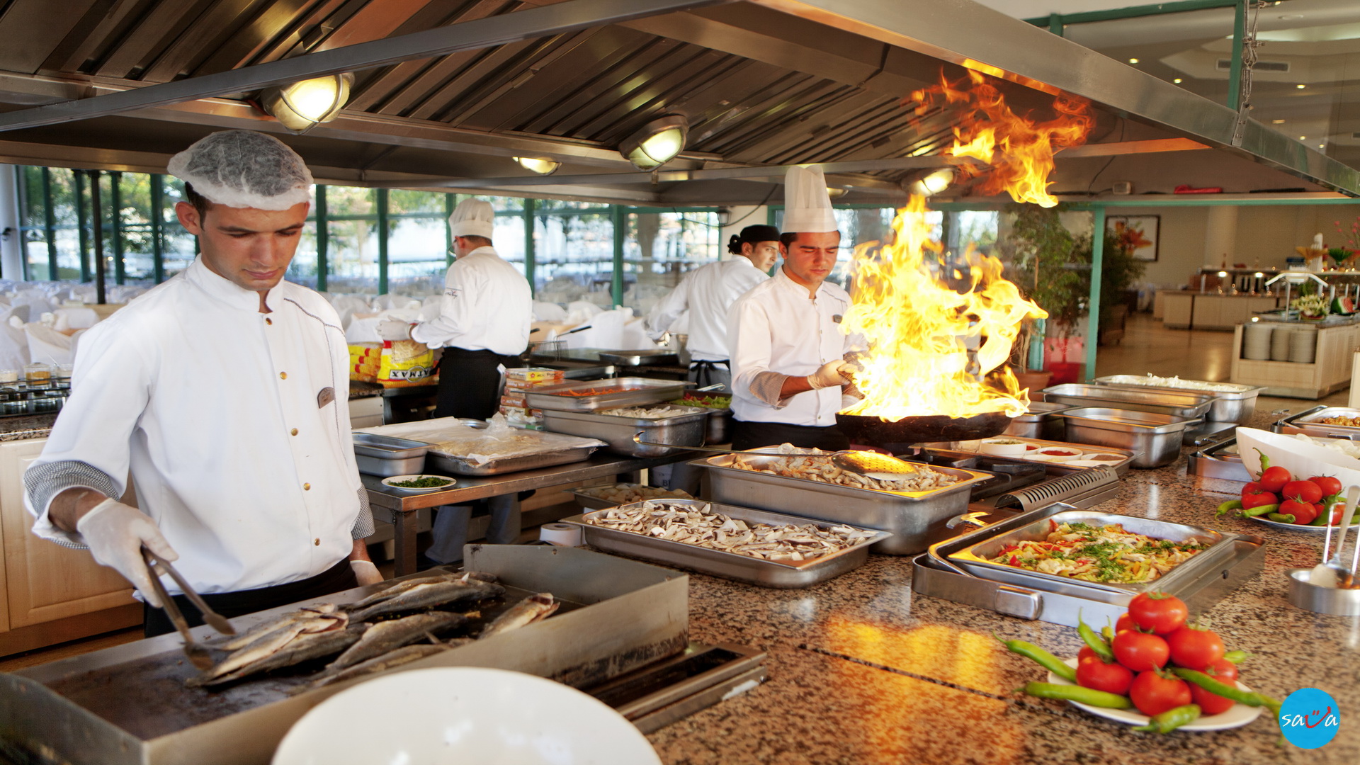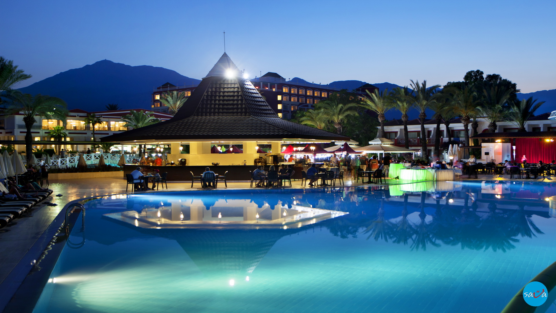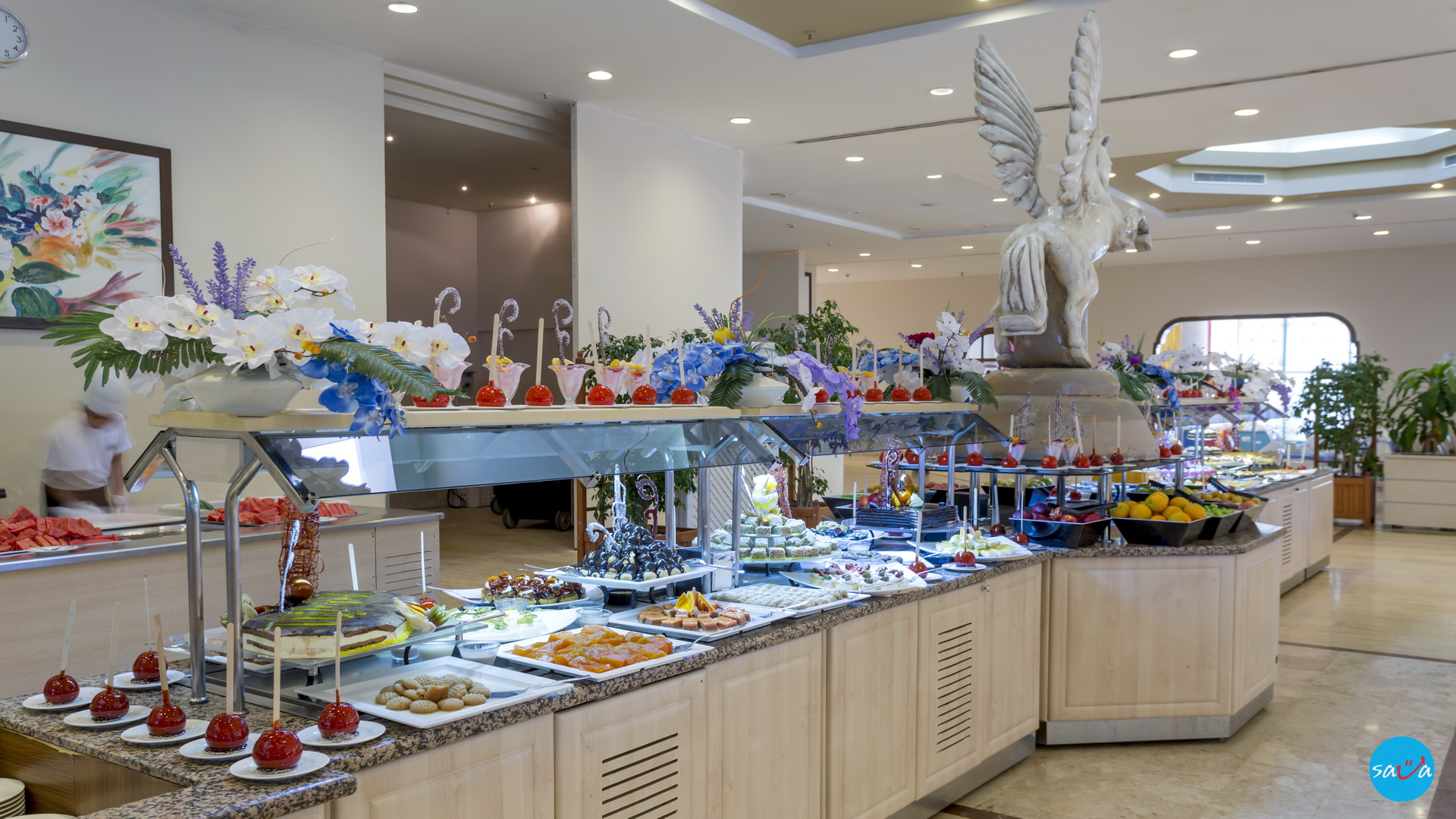 Главен ресторан со шведска маса, A’la Carte ресторани-Италијански, Турски и Мексикански, лоби бар, бар покрај базен, бар на плажа, диско бар. Доктор, телефон, факс, интернет и компјутерски игри, перална и хемиско чистење, мини маркет, продавници, фризер, rent a car, дополнително се наплаќаат. Бесплатен Wi-Fi интернет во лоби.