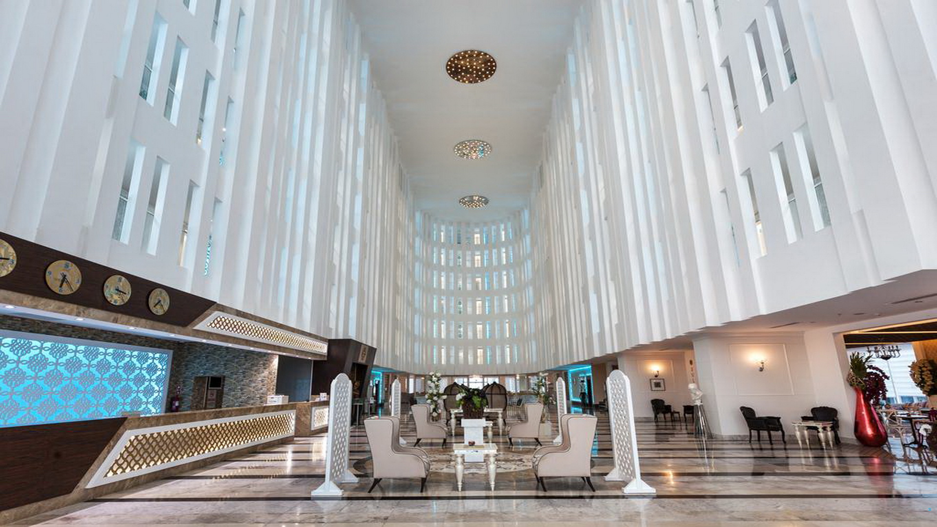 Главен ресторан со шведска маса, A’la Carte ресторани – Турски, Италијански, барови, Disco club. Доктор, бебиситер, фризер, телефон, факс, интернет, компјутерски игри, услуга за перење, сушење и пеглање, шопинг центар, рент а кар се доплаќаат. WI-FI интернет конекција (ниска брзина) во лоби е бесплатна.