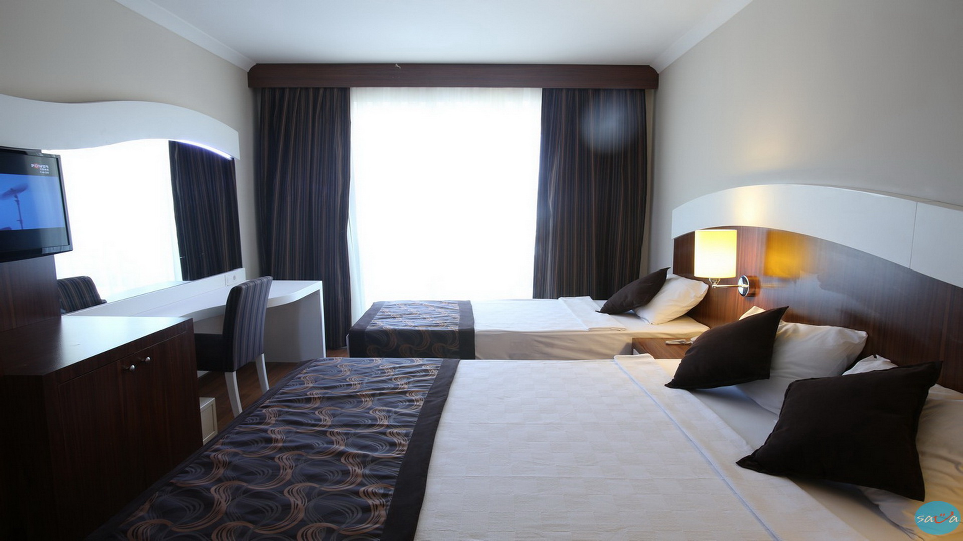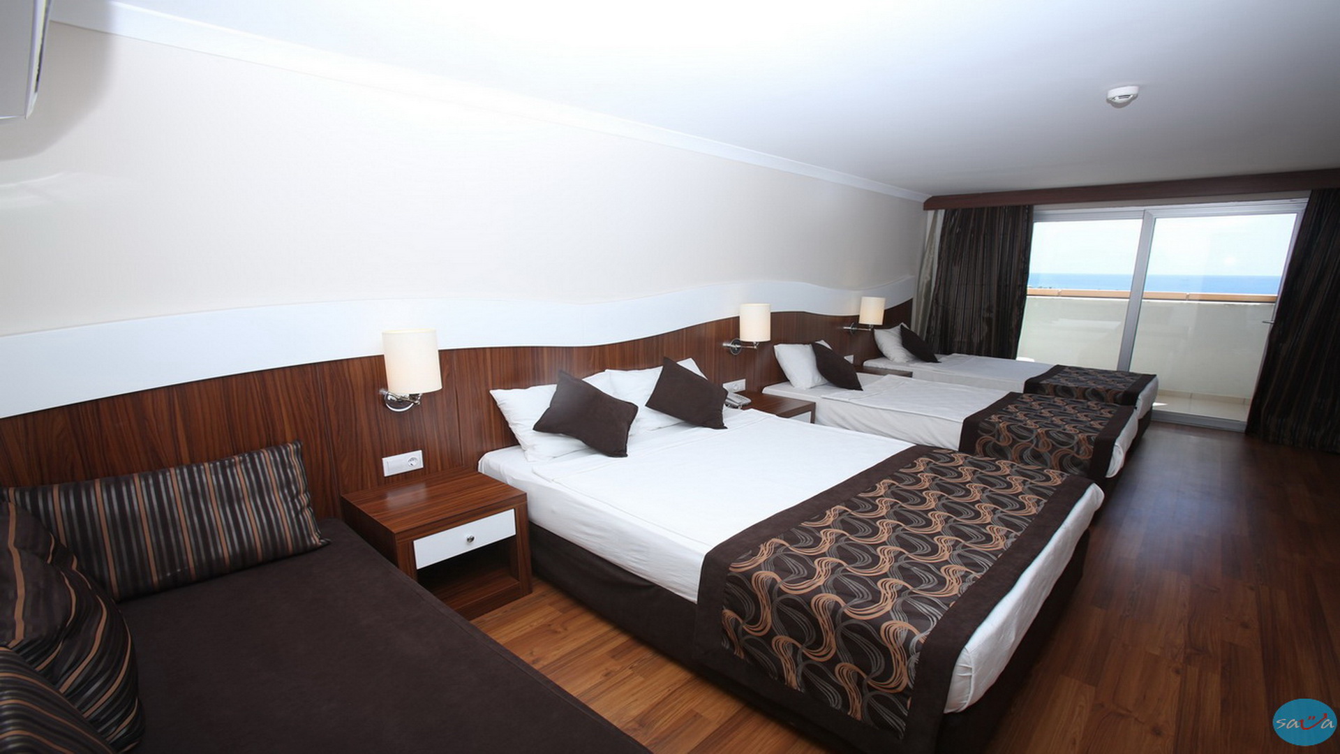 Приватната песочна плажа на хотелот е оддалечена 300 метри од Throne Beach Resort & SPA 5 *, и ја минува улица (поврзана со тунел). Шезлонги, чадори за сонце и пешкири за плажа се бесплатни.