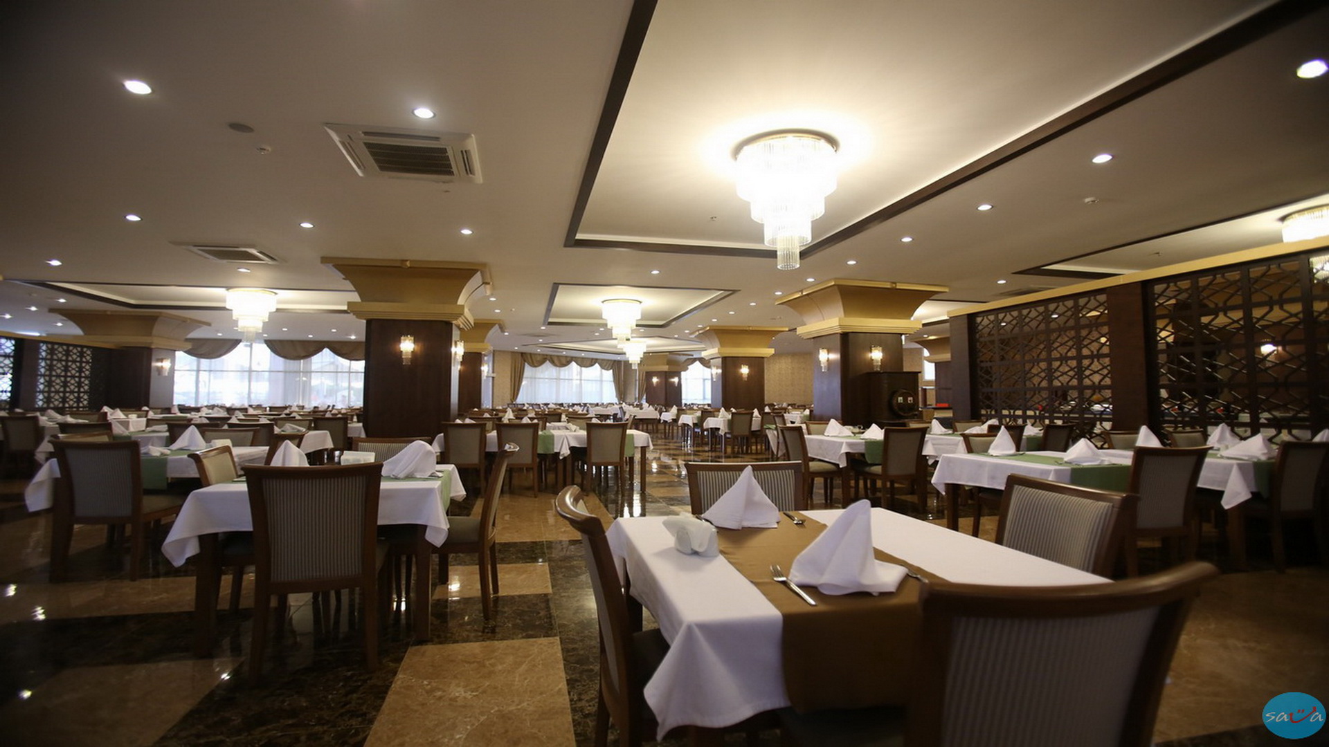Главен ресторан базиран на отворено шведска маса, A'la Carte ресторани: Отоманско – турска кујна, Пиканте – медитеранска кујна, лоби бар, бар покрај базен и бар на плажа, диско клуб.