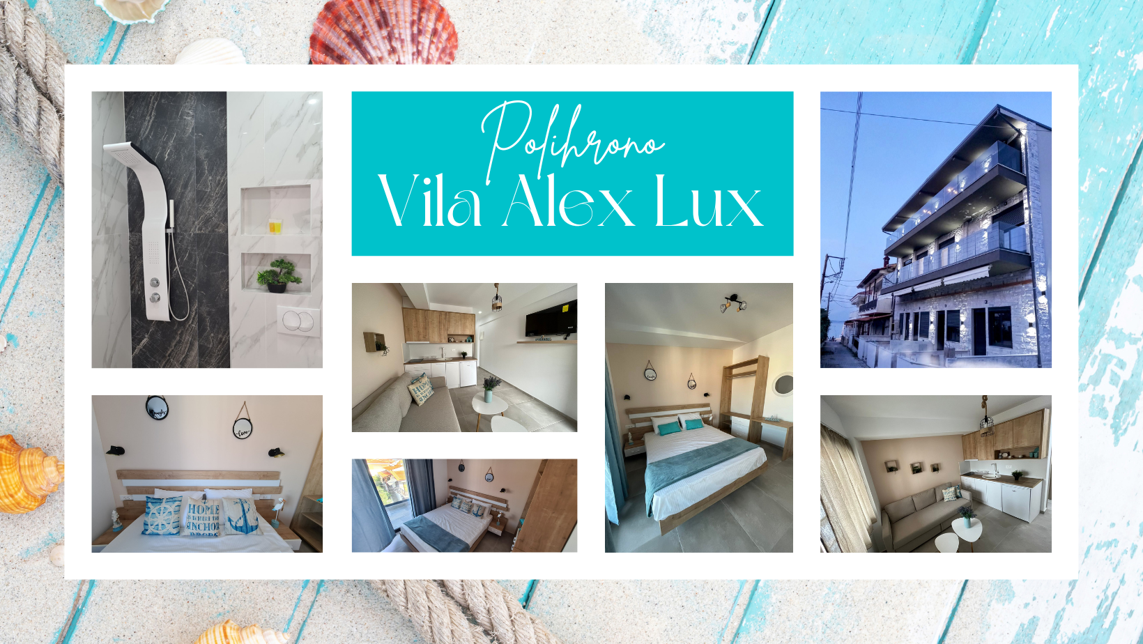 Вила Алекс Лукс е ново изградена вила 2022, истата се наоѓа во Полхроно, на 30м одалеченост од плажа, истата располага со едноспални апартмани за 4 лица или за 6 лица. Апартманите се целосно опремени со кујнски прибор за готвење, маса и столчиња на тераса за седење, ТВ. Апартманите за 6 лица се лоцирани сите на приземје, а апартманите за 4 лица на прв или втор спрат.