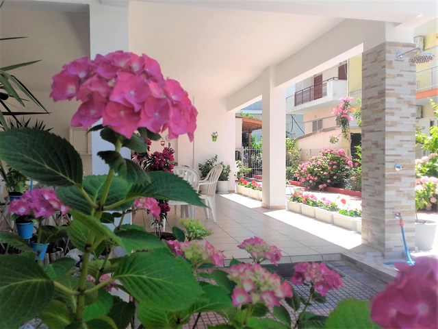 Вилата се наоѓа во нов дел на Неи Пори, на околу 250м од песочната плажа. Располага со прекрасна градина, опремена со гарнитура за седење како и бања со туш и тоалет, наменета за гостите на вилата, пред се за првиот/последниот ден од престојот. Сместувачките капацитети се наоѓаат на прв, втор и трет кат и сите имаат опремена кујна, бања/тоалет, тераса, ТВ, клима (со доплата на лице место) и WiFi интернет.
