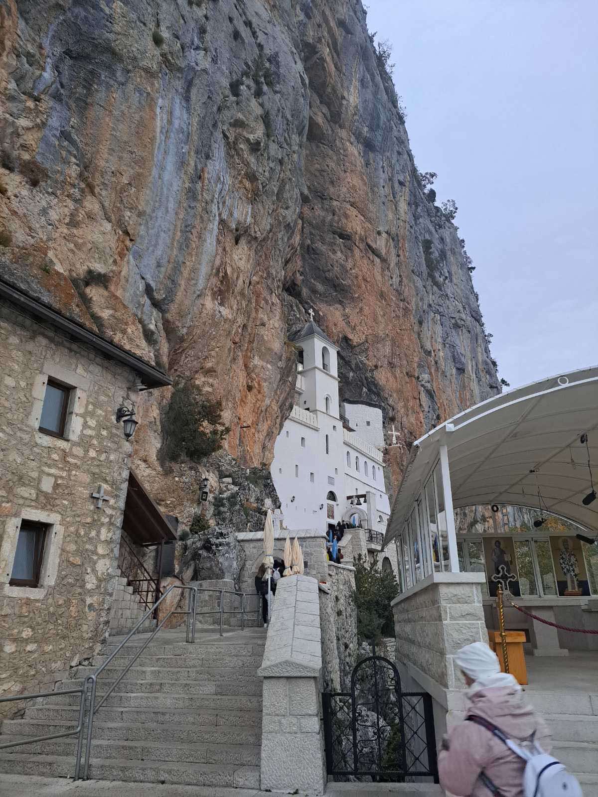 Пристигнување во раните утрински часови во Острошки Манастир. Манастирот Острог е манастир на Српската православна црква сместен со речиси вертикална позадина, издигнат во големата карпа на Острошка Греда. Тој е посветен на Свети Василиј од Острог ( Свети Василије Острошки ), кој бил погребан овде. Она што е интересно дека е изграден во карпа и е несекојдневно за манастир.