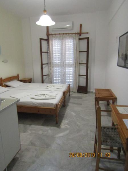 Alkmene Studios се наоѓаат на само неколку метри од главната улица Пападијаманти на Скијатос. До пристаништето на Скијатос се одалечени на 5 минути пешачење, а најблиската плажа е на 200 метри. Автобуската станица до другите плажи на островот е на 100 метри. Собите се ново реновирани и целосно опремени. Имаат сопствена бања, кујна, фрижидер, клима уред.