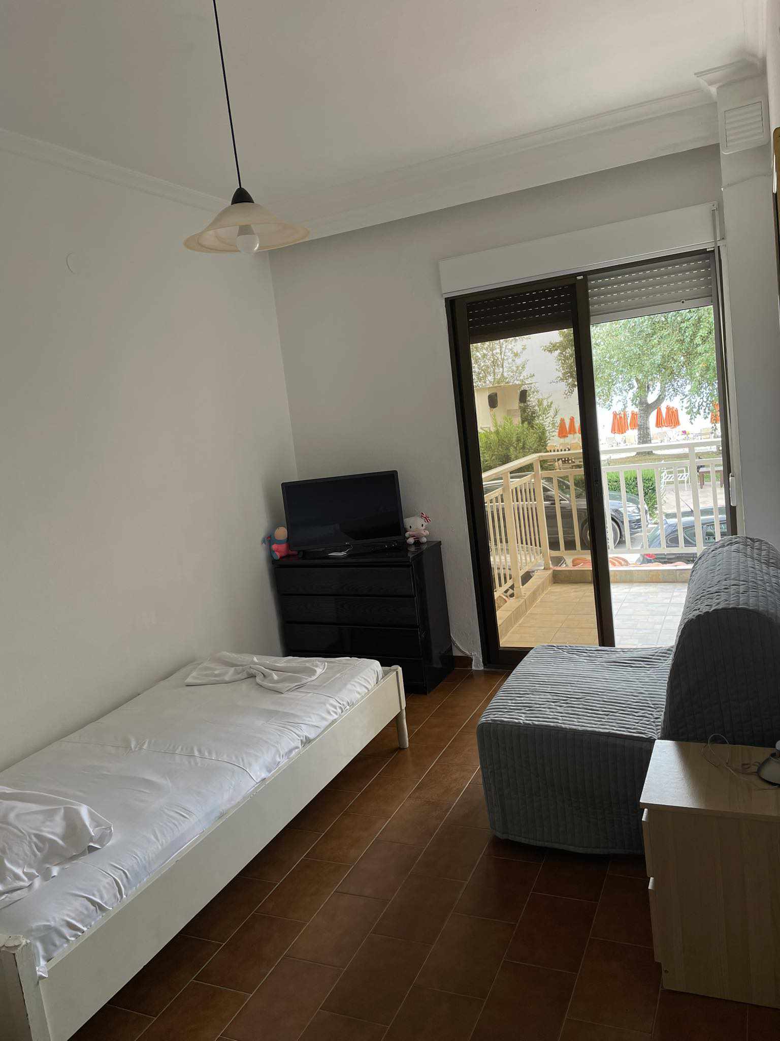 Вила Кози се наоѓа на 30м о плажа. Апартманот се наоѓа на прв спрат и има две спални соби. Едната е со брачен кревет, другата со два единечни кревети и еден кревет на извлекување.Има кујна која е погодна за спремање на лесна храна. WC, клима која е вклучена во цената..Терасата е со поглед на море. 1/4+1