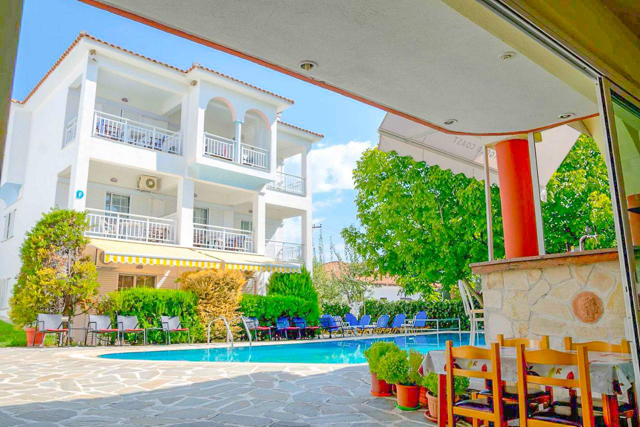 Мелиса Голд Коуст се наоѓа во живописното место, наречено Псакудија, кое се наоѓа на вториот крак на Халкидики, Ситонија. Хотелот се состои од четири главни згради, со поглед на боровата шума,опремена кујна за подготовка на лесна храна и базен и е на само 80 метри до плажата. Различни типови на соби, рецепција, базен, хидромасажа, детски базен, бар покрај базен, ресторан, бар на плажа со игралиште, лежалки и чадори и спортови на вода.