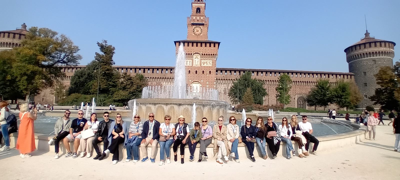 По појадокот, со јавен превоз (метро или трамвај) се упатуваме кон центарот на Милано, каде нашиот локален водич ќе не пречека и ќе го започнеме разгледот. Милано, главниот град на регионот Ломбардија, градот на модата, финансискиот центар на северниот дел на Италија. Градот во кој се спојуваат минатото и сегашноста, градот кој ги има фасцинирано најголемите уметници низ историјата. Замокот Sforzesco, домот на фамилијата Sforza, едно од најмоќните фамилии низ историјата кои владееле со регионот Ломбардија. Во овој замок, Leonardo da Vinci ги поминал последните години од неговиот живот, каде што остварил неколку преубави уметнички дела, а едно од најпознатите е Последната Вечера. Arco de la Pace, паркот Sempione, населбата Brera, познатата опера Scala di Milano, галеријата Vittorio Emanuele II, и се разбира познатата миланска катедрала, Il Duomo di Milano се уште неколку познати места кои ќе ги посетиме и ќе уживаме во нивната убавина.