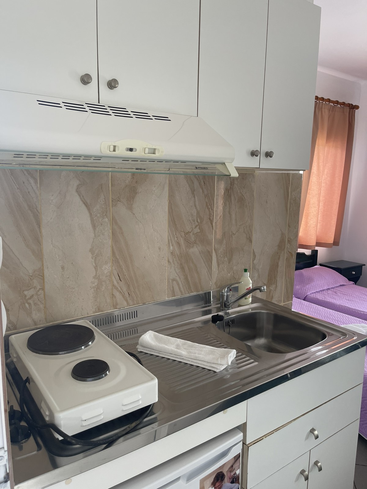 Четирикреветните студиа се со четири единечни кревети.Секое студио е опремено со сопствена кујна,сопствено купатило,балкон и клима уред (се доплаќа).