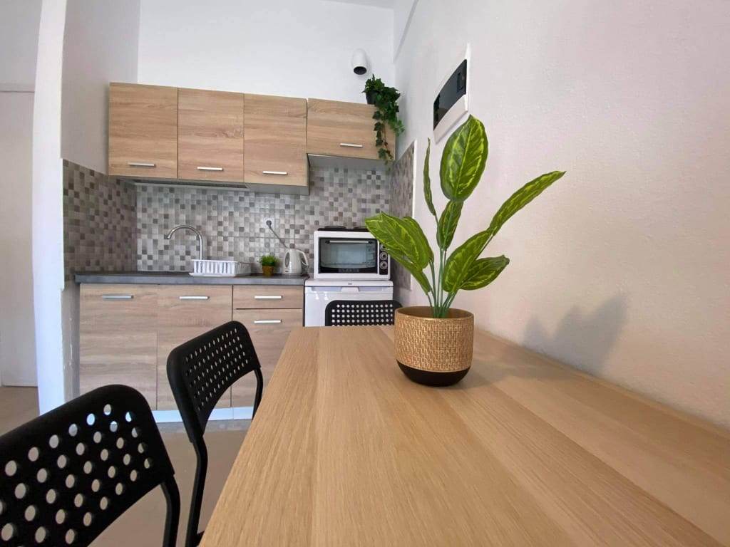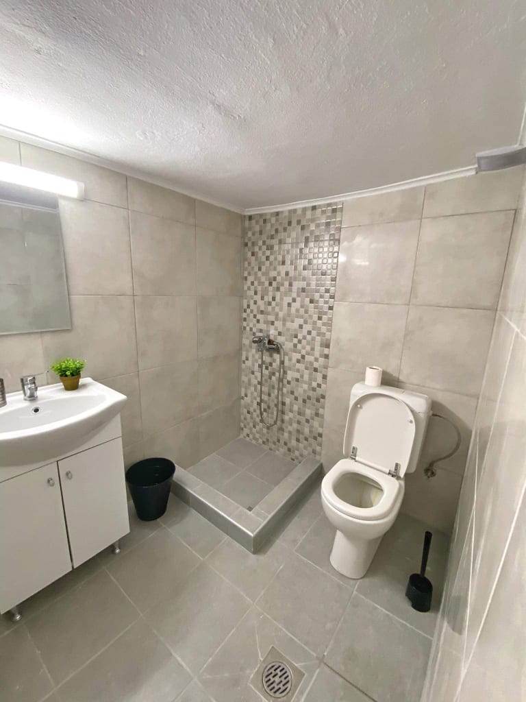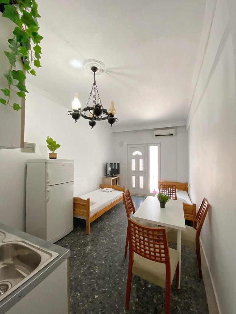 Апартман број1 е за 4 лица. Во едната соба има брачен кревет,и одделна кујна. Во кујната има 2 единечни кревети. Кујната е опремена за подготовка на храна, и има прибор за онолку лица колку што би престојувале. Климата и Wi-Fi се вклучени во цена. Апартманот се наоѓа на приземје.