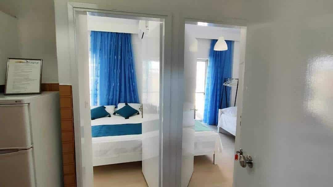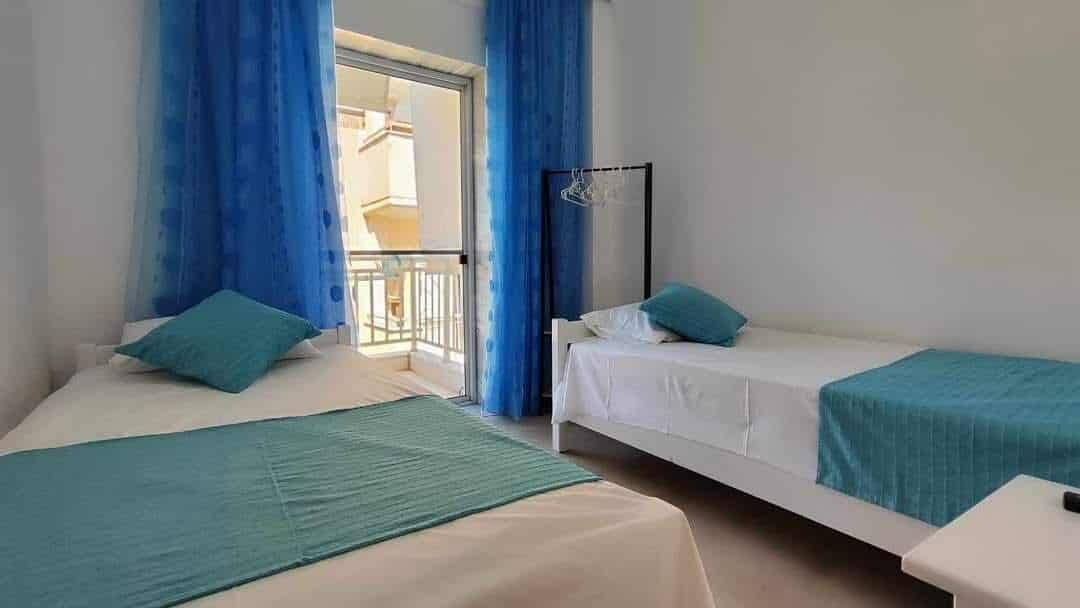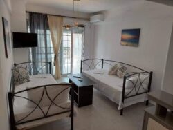 Апартманот е наменет за 5 лица.Се наоѓа на 30м од плажа.Има две спални соби во едната има брачен кревет а во другата соба има 3 единечни кревети.Бања,тераса и кујната која е целосно опремена за приготвување на лесна храна.