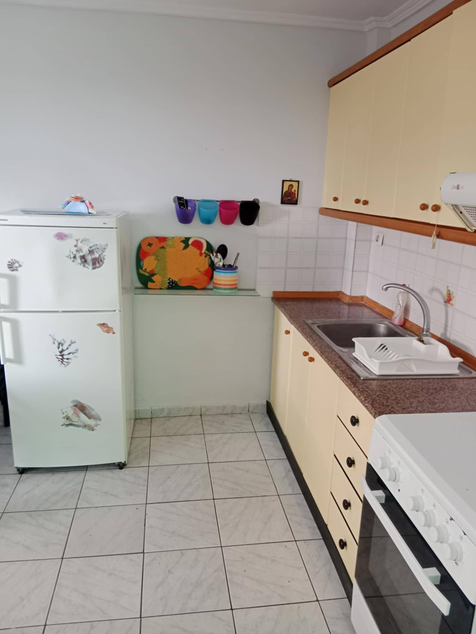 Апартманот се наоѓа на 100м. од плажа.Овој апартман е наменет за 4-5 особи.Има трпезарија со кујна,спална соба со брачен кревет,бања и тераса.Во трпезаријата креветот е на извлекување и една фотеља која исто така и таа се извлекува.Кујната е опремена со основен прибор за припрема на лесна храна.Во апартманот има и машина за перење алишта.Апартманот се наоѓа на втор спрат.