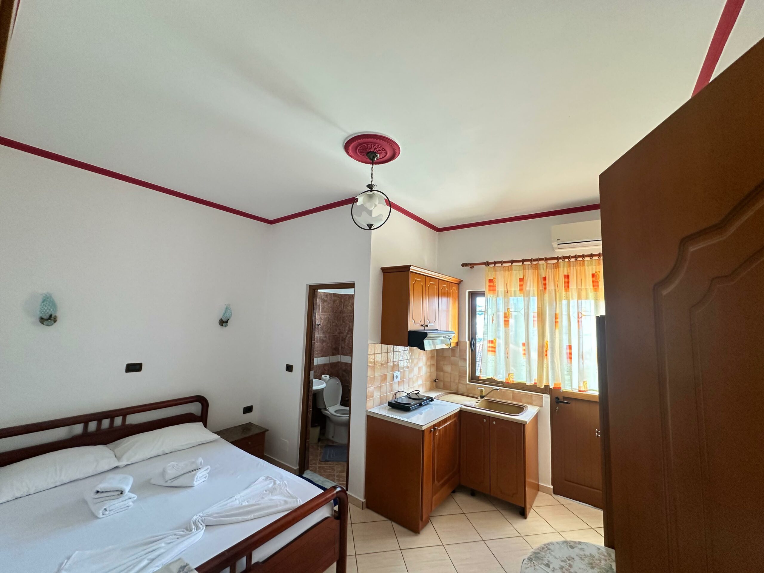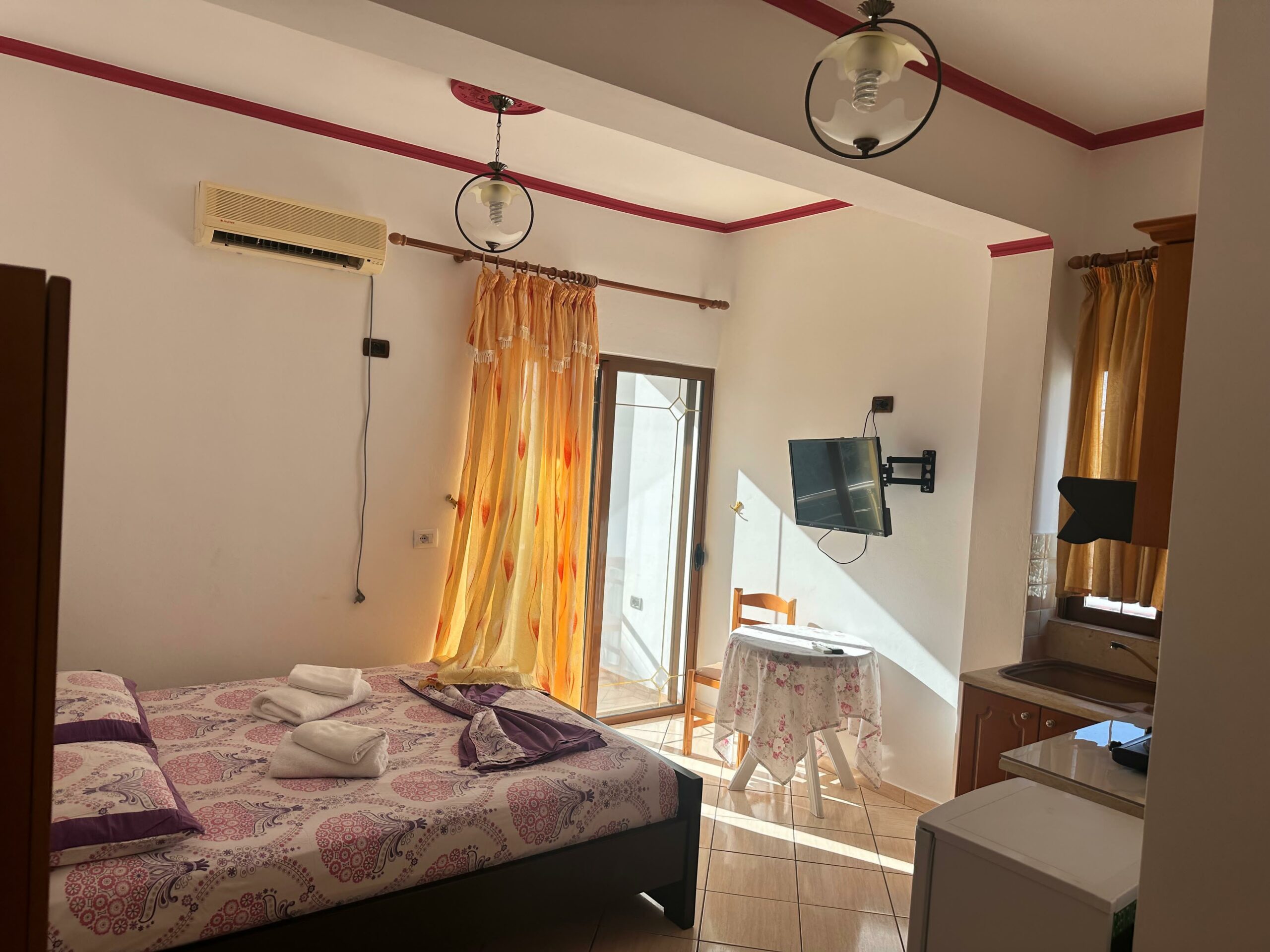 • Студиото има голем брачен кревет, комплетно опремена кујна со прибор за готвење и јадење, фрижидер, клима (вклучена во цената) сопствено купатило, бесплатен интернет во собата и во цела вила.