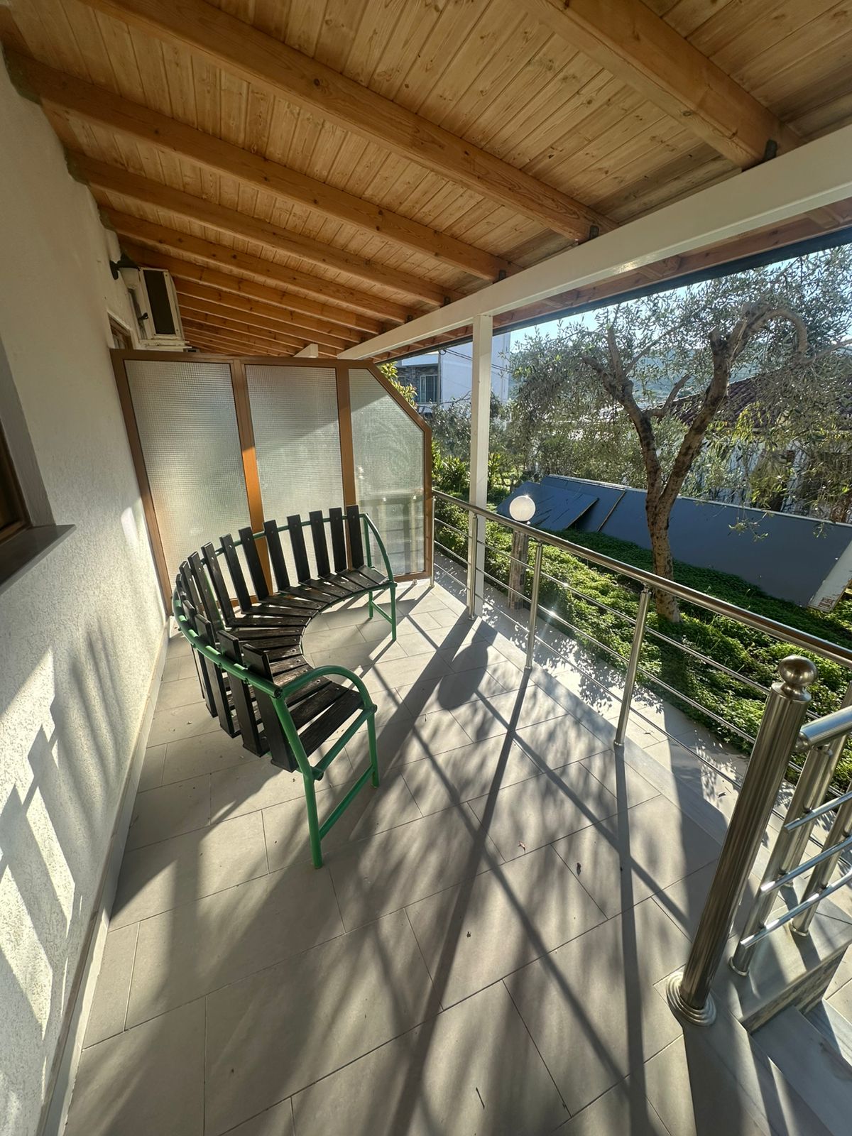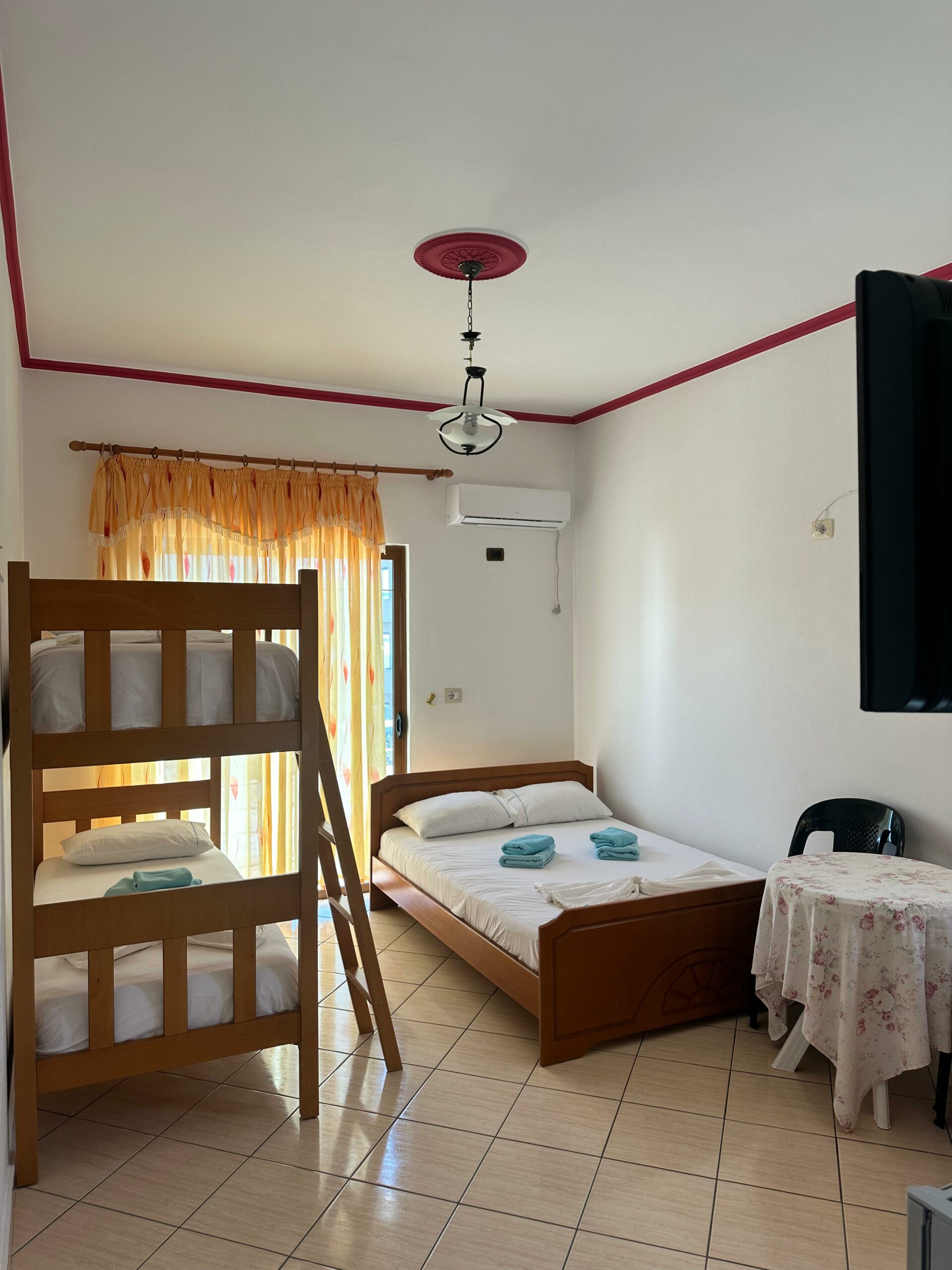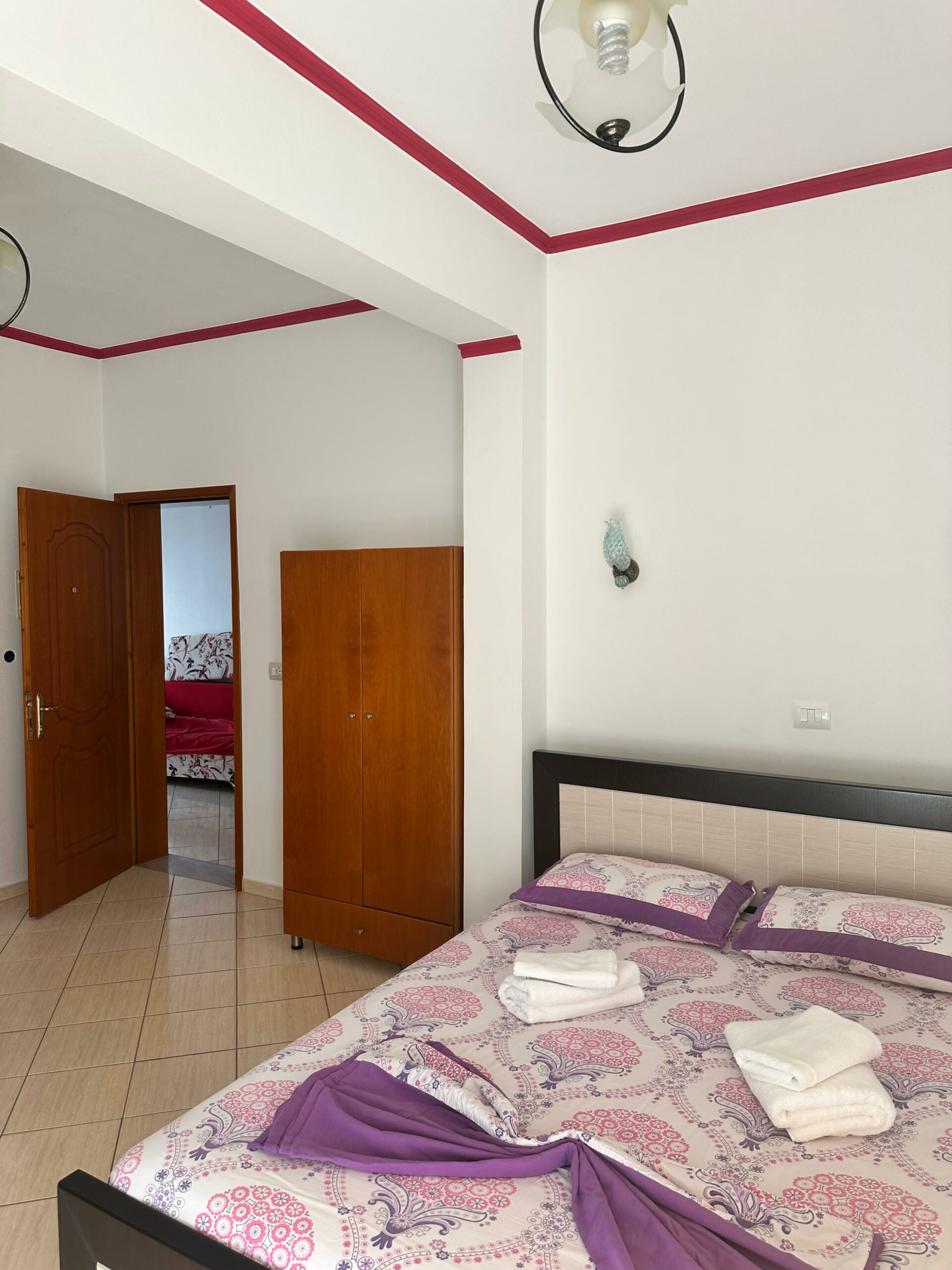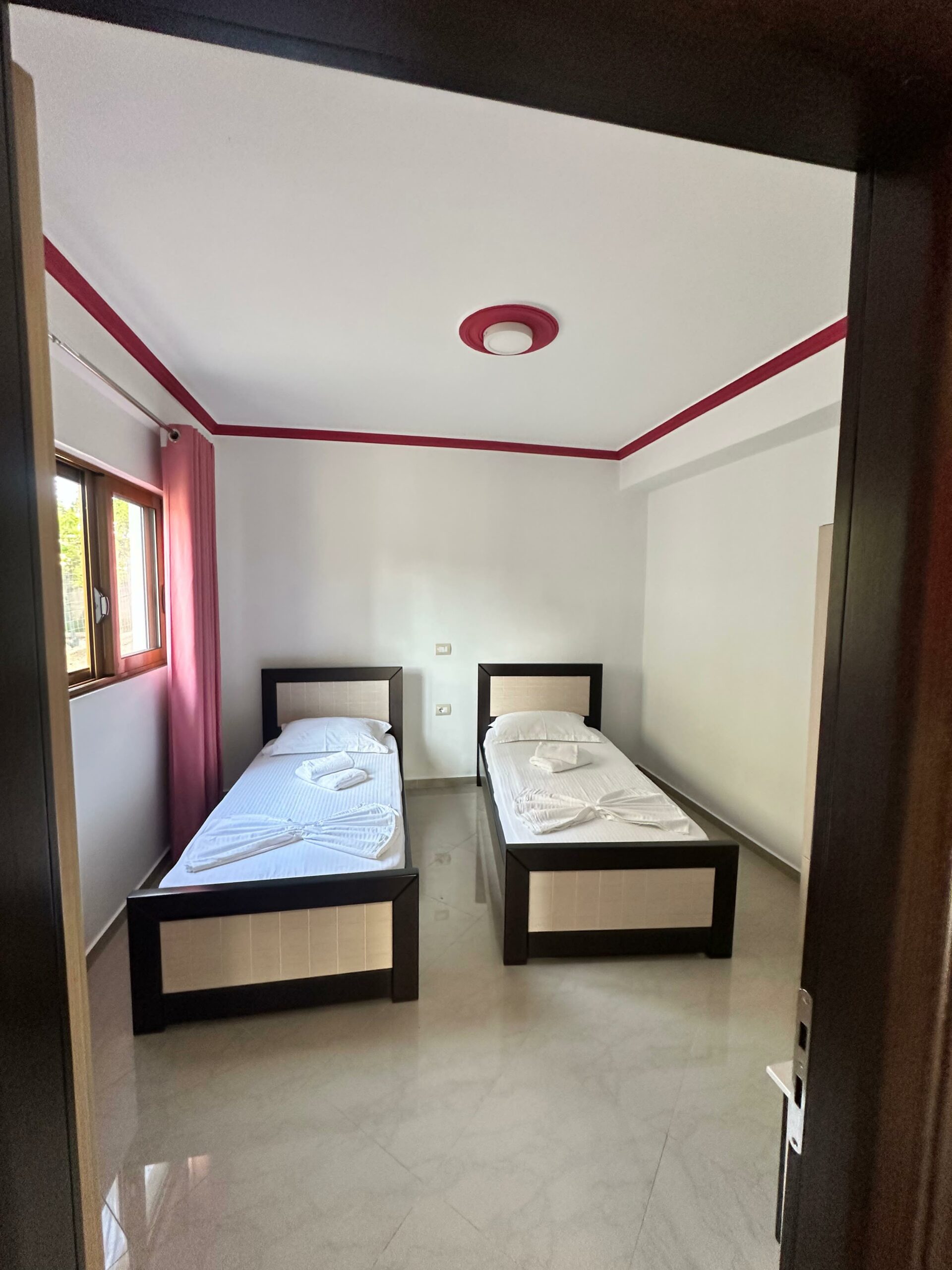 • Апартманот има две спални едната е со голем брачен кревет, а другата е со два едични кревети, одвоена комплетно опремена кујна со прибор за готвење и јадење, фрижидер, клима (вклучена во цената), сопствено купатило, бесплатен интернет во собата и во цела вила.