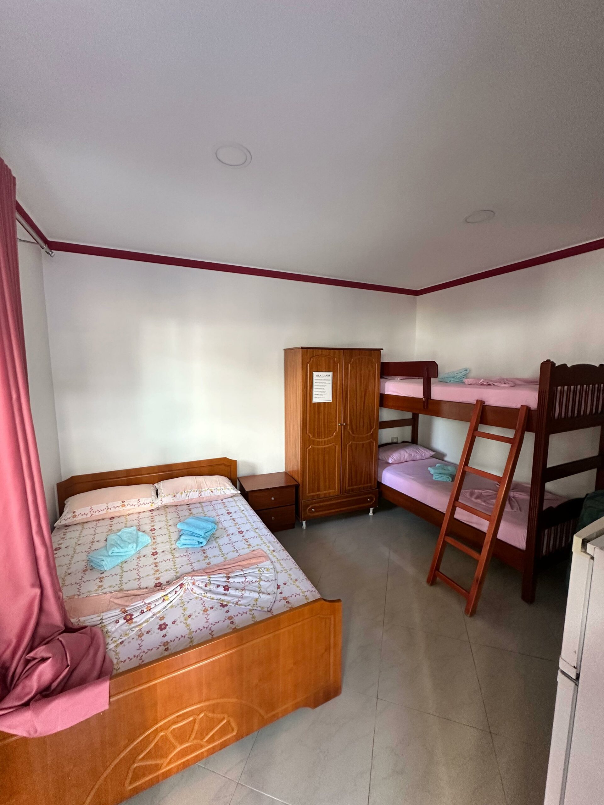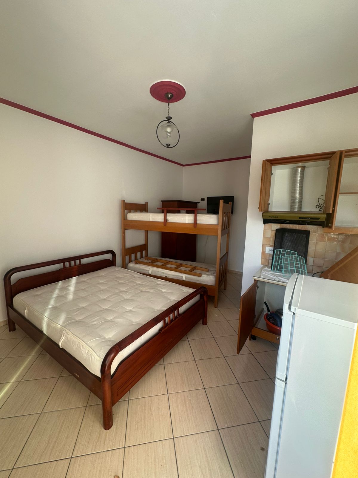 • Студиото има голем брачен кревет + два кревети на спрат, комплетно опремена кујна со прибор за готвење и јадење, фрижидер, клима (вклучена во цената) сопствено купатило, бесплатен интернет во собата и во цела вила.