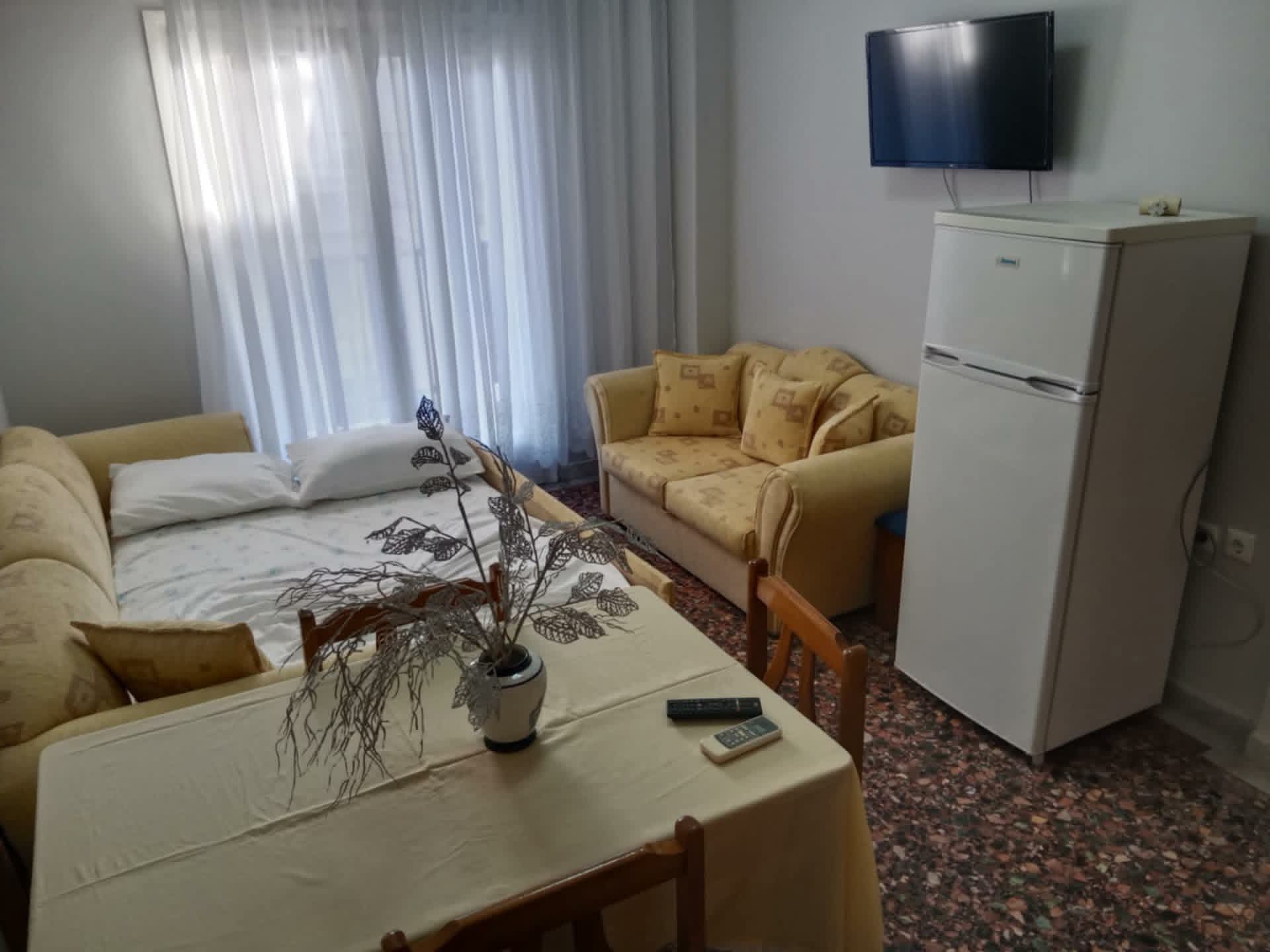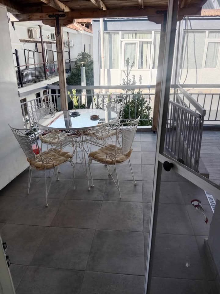 Апартман бр.1 во Неа Плагија. За 4 лица. 80 метри од плажата. Имате еден брачен кревет во едната соба, плус 2 единечни кревети во другата соба. Кујна опремена за подготовка и сервирање храна и пијалоци. Клима уредот и Wifi се вклучени во цената. Апартманот се наоѓа на првиот кат и има 2 тераси. Една напред и една позади.