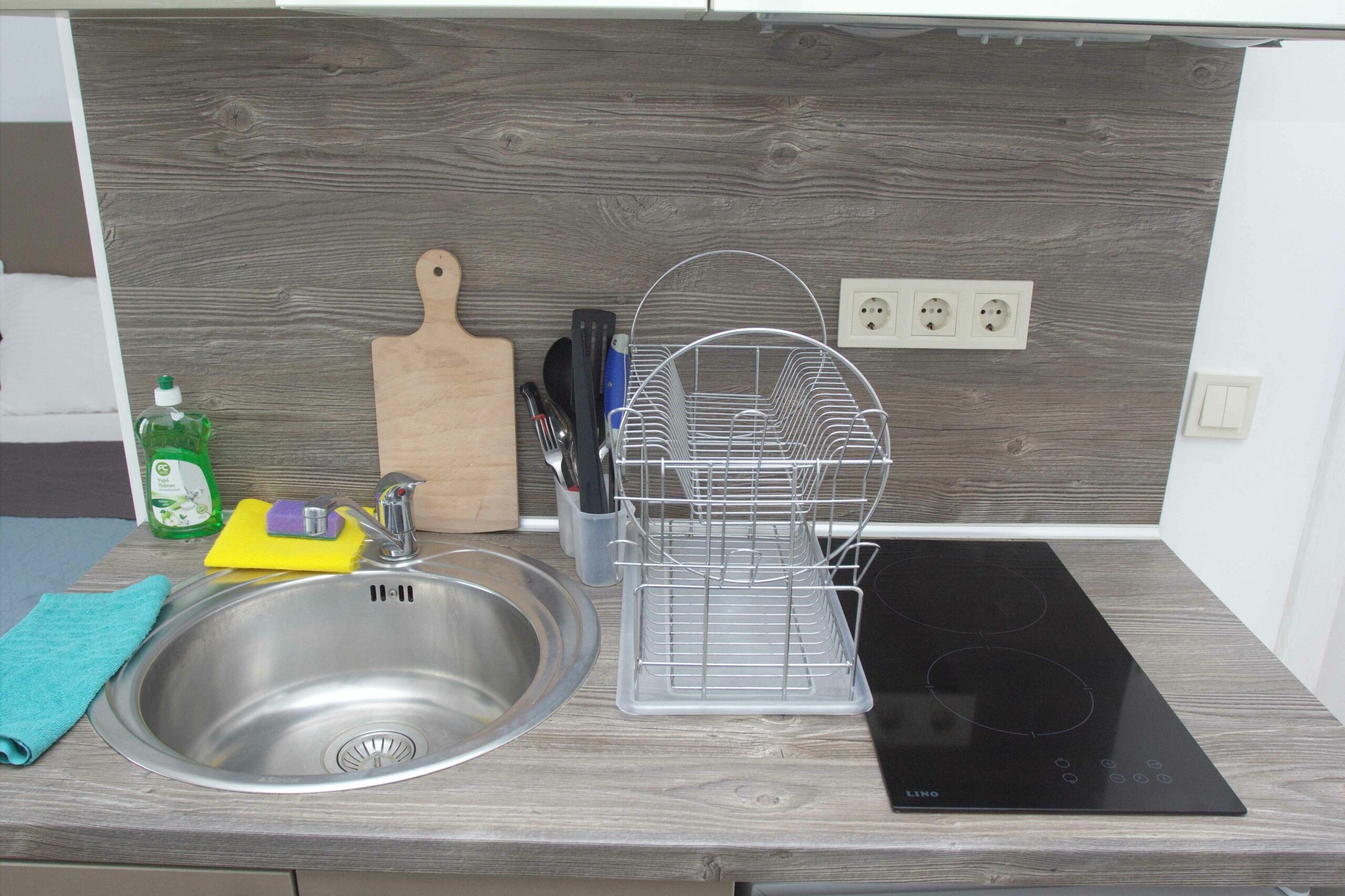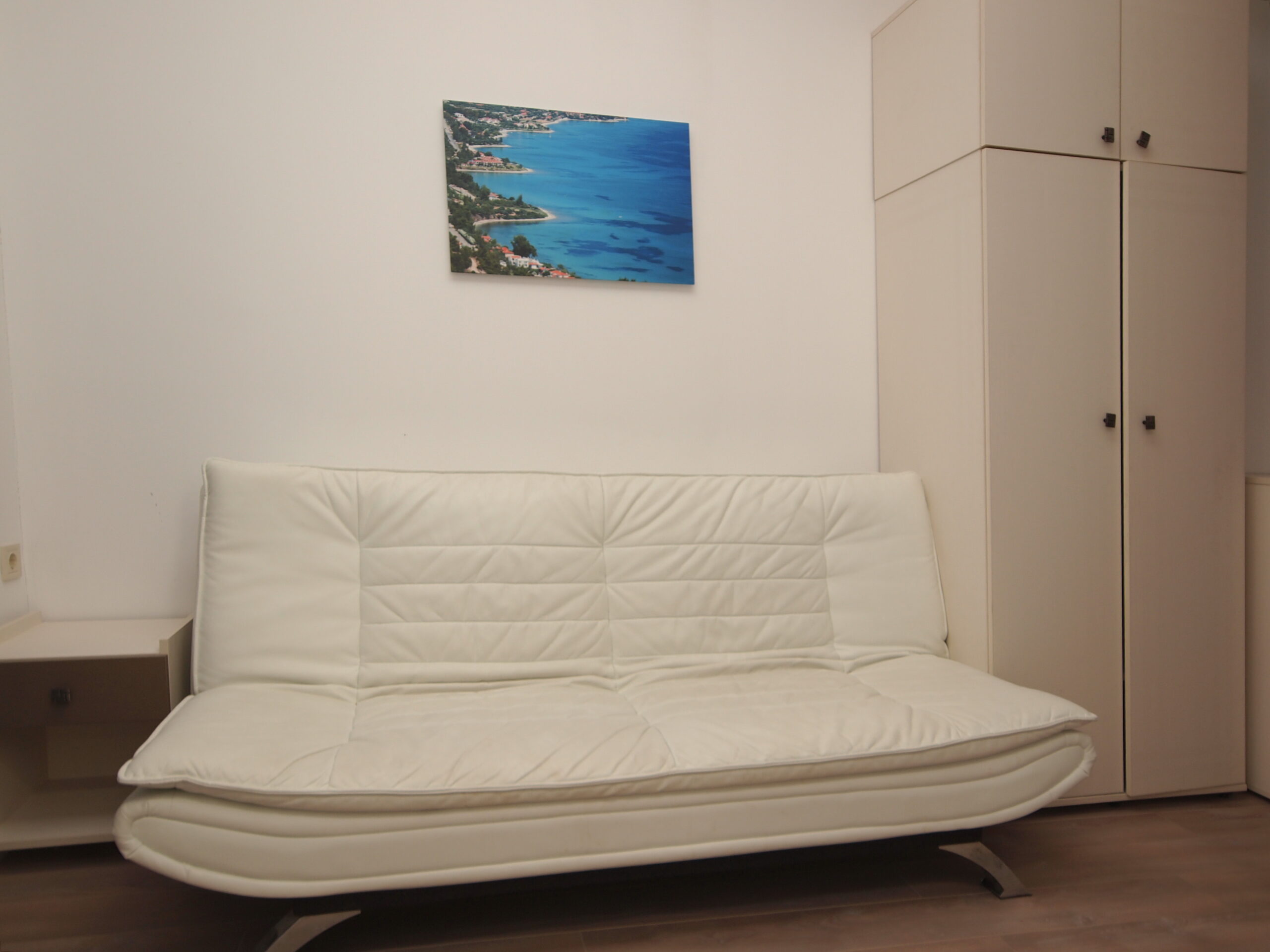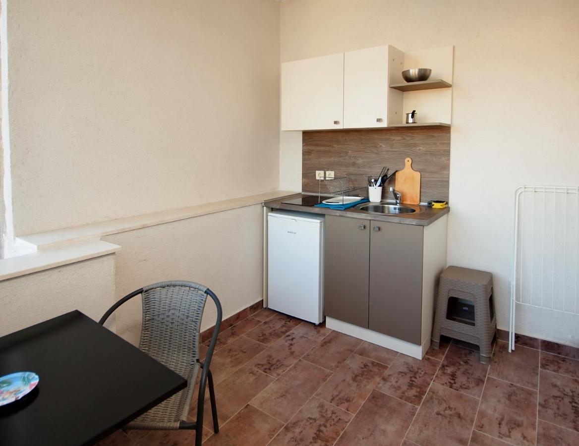 Студио број 1 е опремено со еден брачен кревет, мини кујна, тоалет и клима,за престој на максимум 2 возрасни лица.