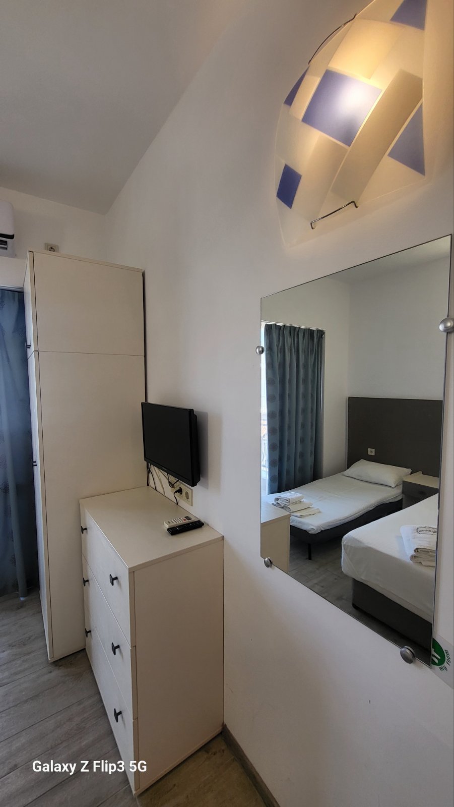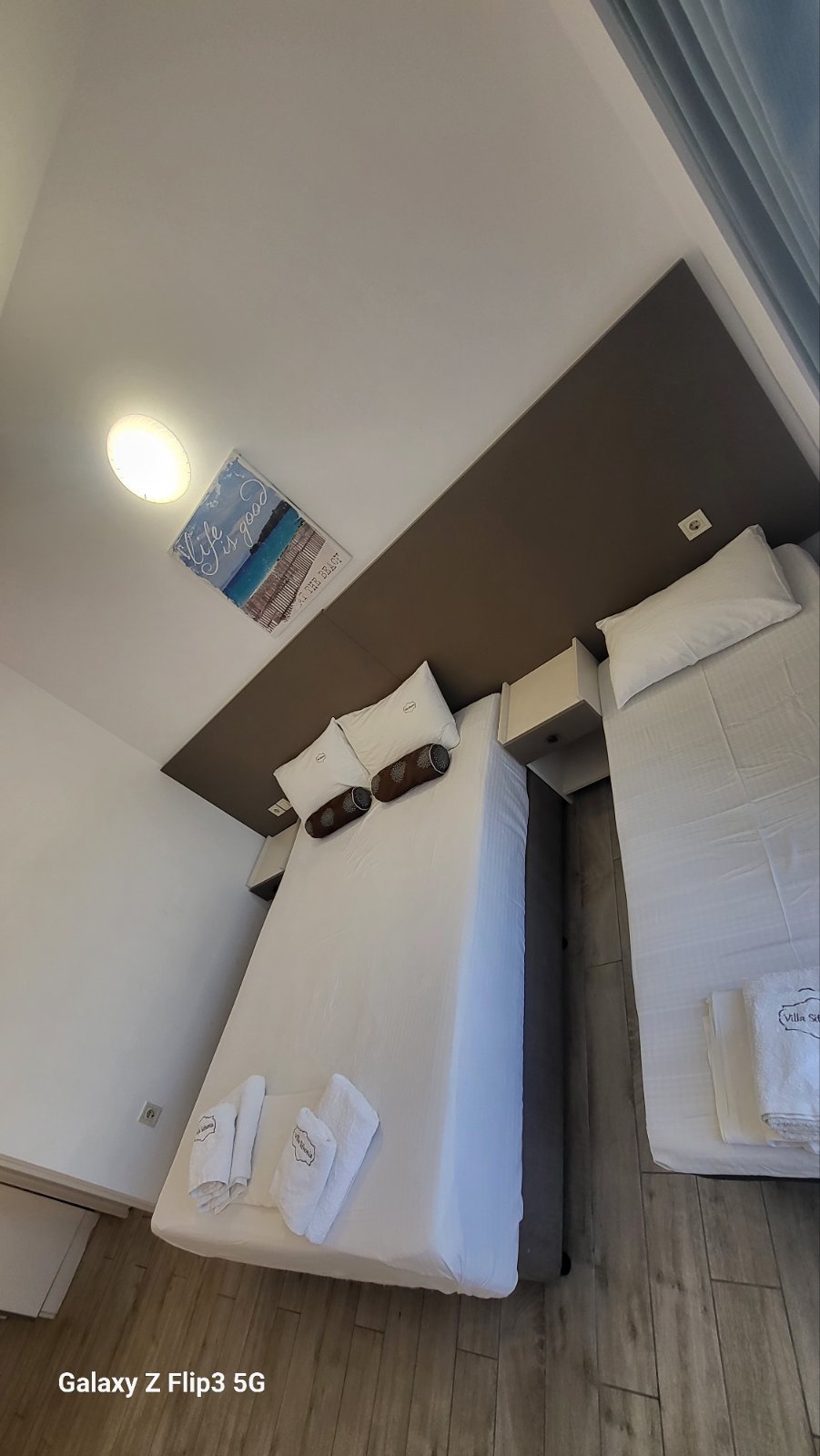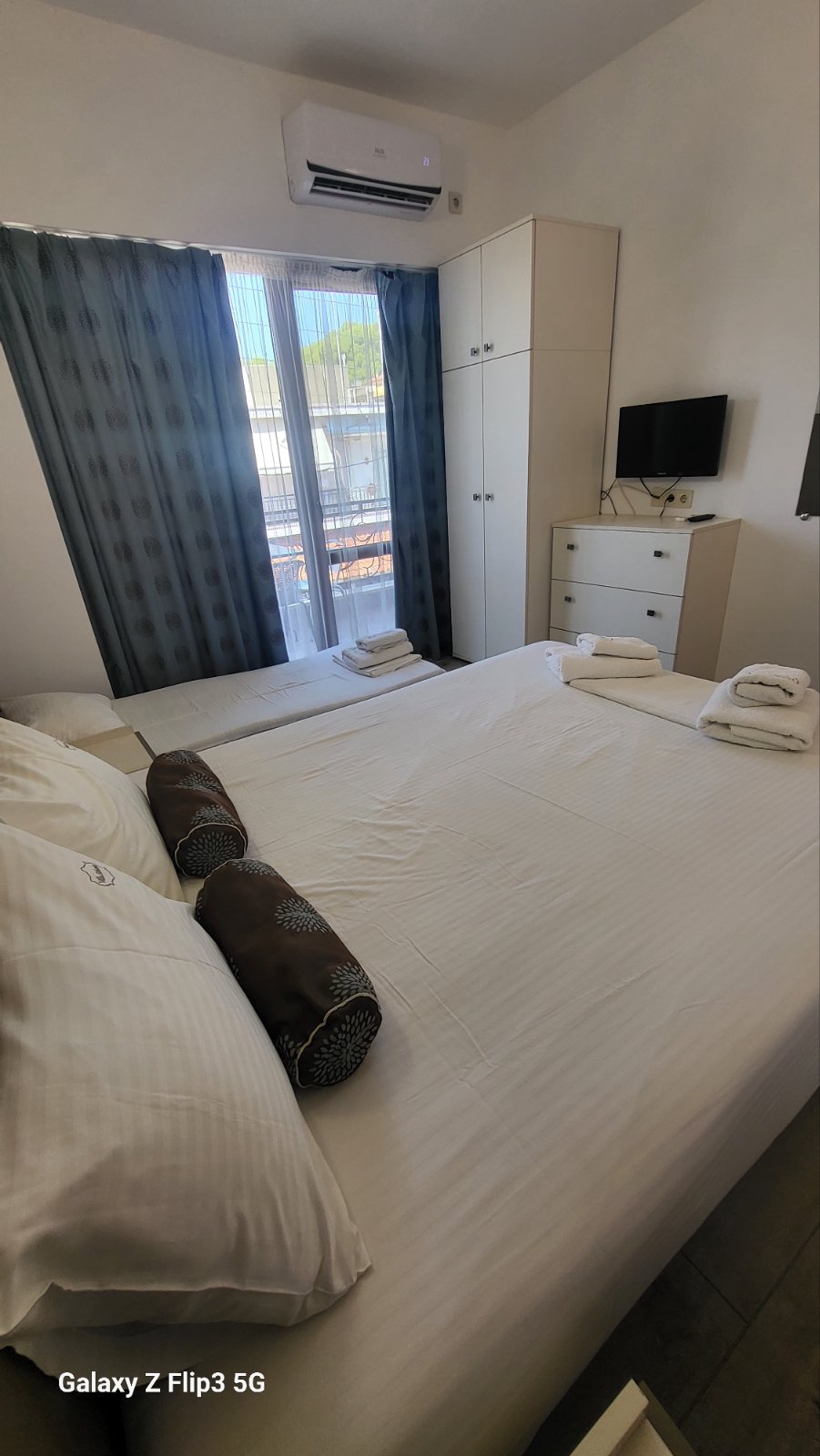 Студио број 5 е опремено со еден брачен кревет и два кревети на спрат, мини кујна, тоалет и клима.