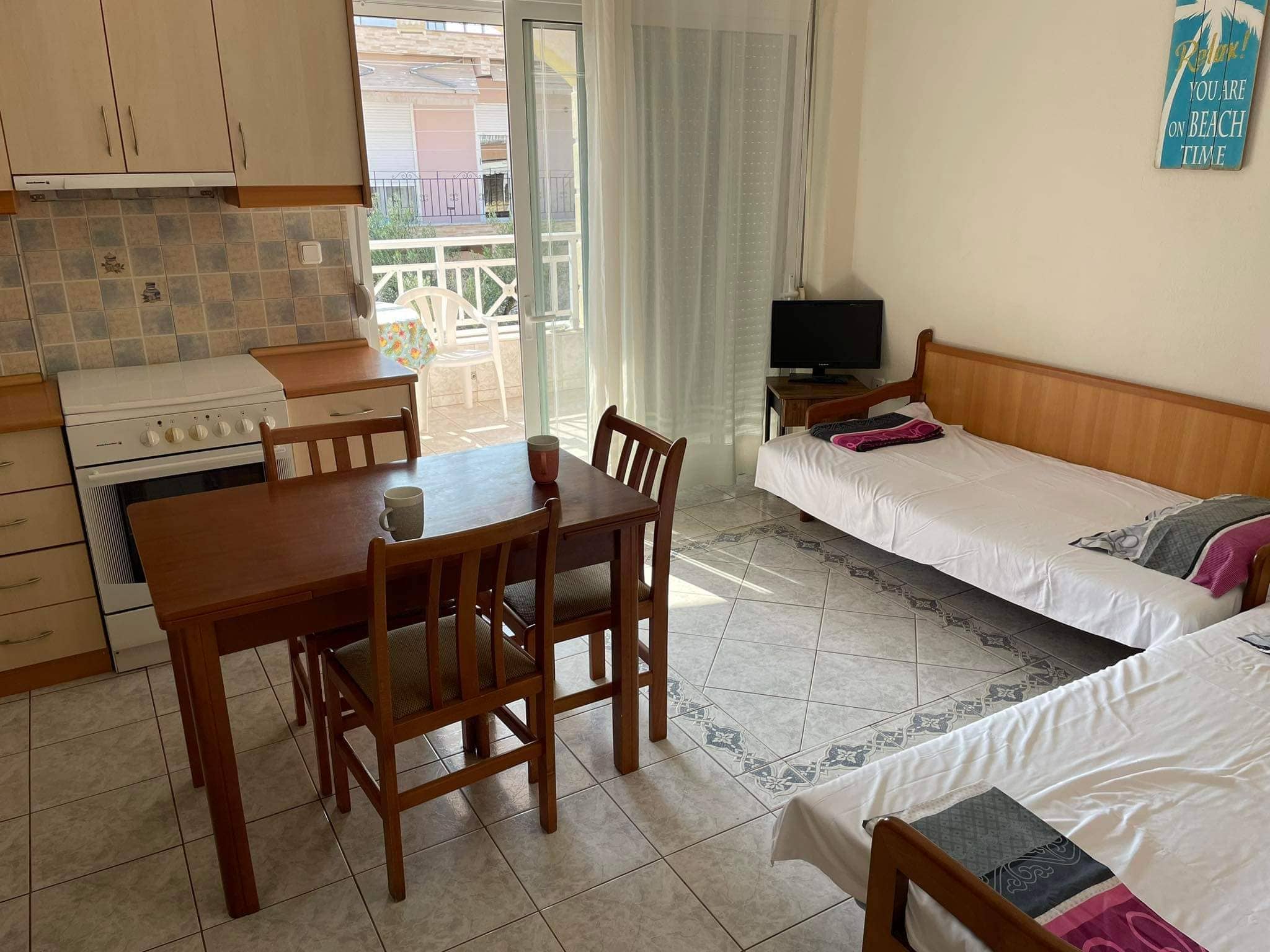 Вилата се наоѓа на 80 м од плажа. Апартманите располагаат со соба во која има брачен кревет, кујна одделно. Апартманите имаат тераса. Во кујната има два единечни кревето. Кујната еопремена со основен прибор за подготовка на грана.Климата и Wi-Fi се вклучени во цена.